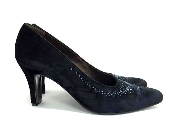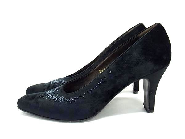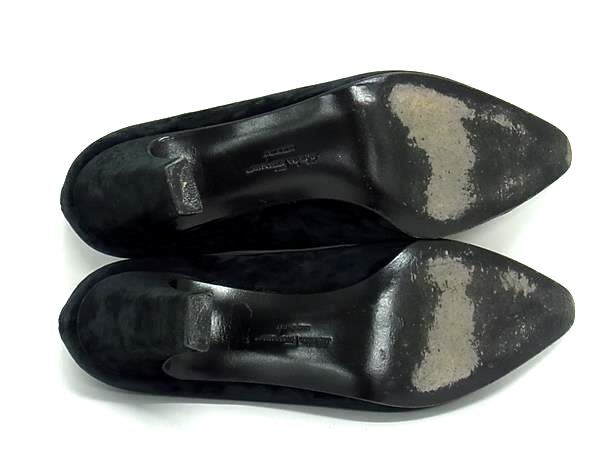■美品■ Salvatore Ferragamo フェラガモ スエード ビーズ ヒール パンプス サイズ 6 1/2 (約23.5cm) 靴 シューズ ブラック系 DK6314