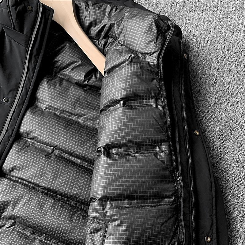 新品 DCKMANY ダウンジャケット ミドル丈 フード&ダウンライナー取り外し可能 キルティング スタンドカラー 極地防寒 防風 撥水 厚手 冬服 メンズ ダウンコート 黒 E5530-3XL