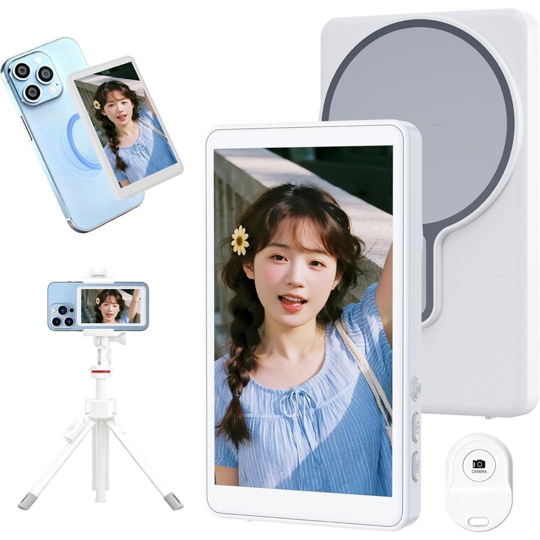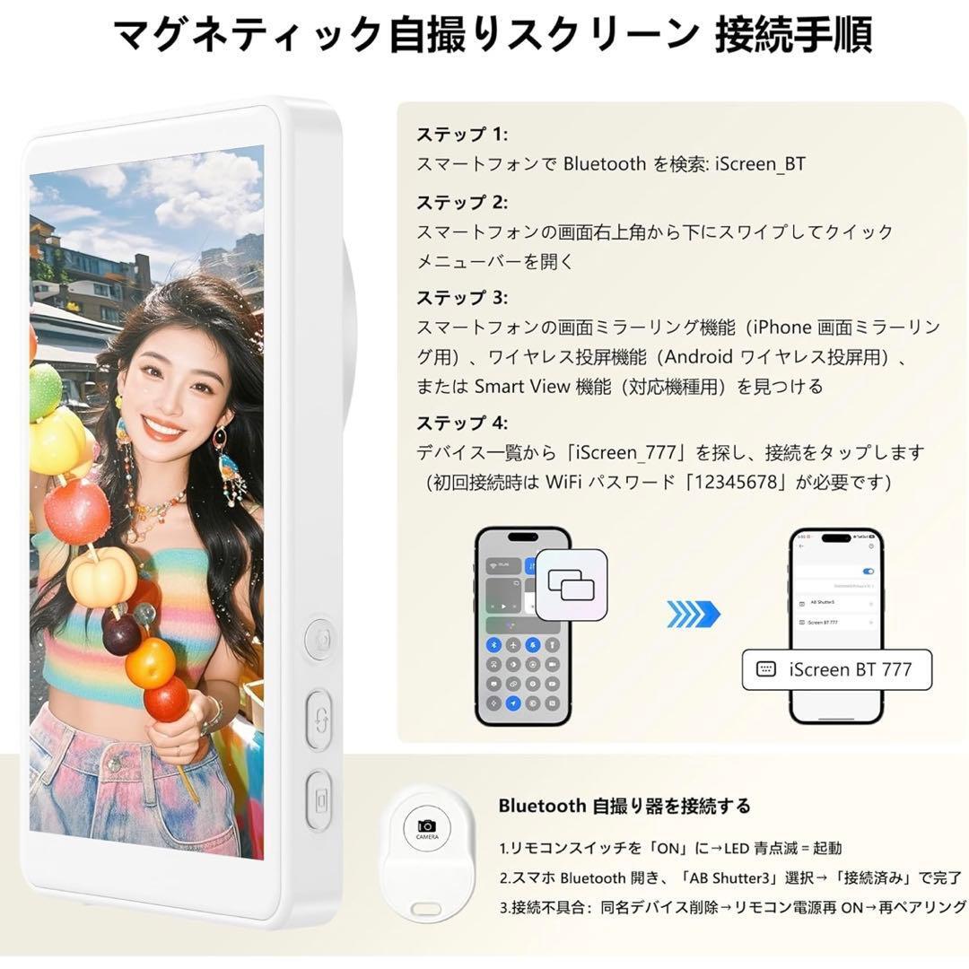 【強力磁気&ワンタッチ接続で、どこでもスタジオに】 スマホ背面にピタッと磁気吸着。複雑な設定は一切不要です。電源を入れて、スマホの画面ミラーリングで「iScreen_777」を選ぶだけのワイヤレス接続。三脚に取り付ければ、一人での撮影も簡単。まるで専属カメラマンがいるような、ストレスフリーな創作体験を提供します。