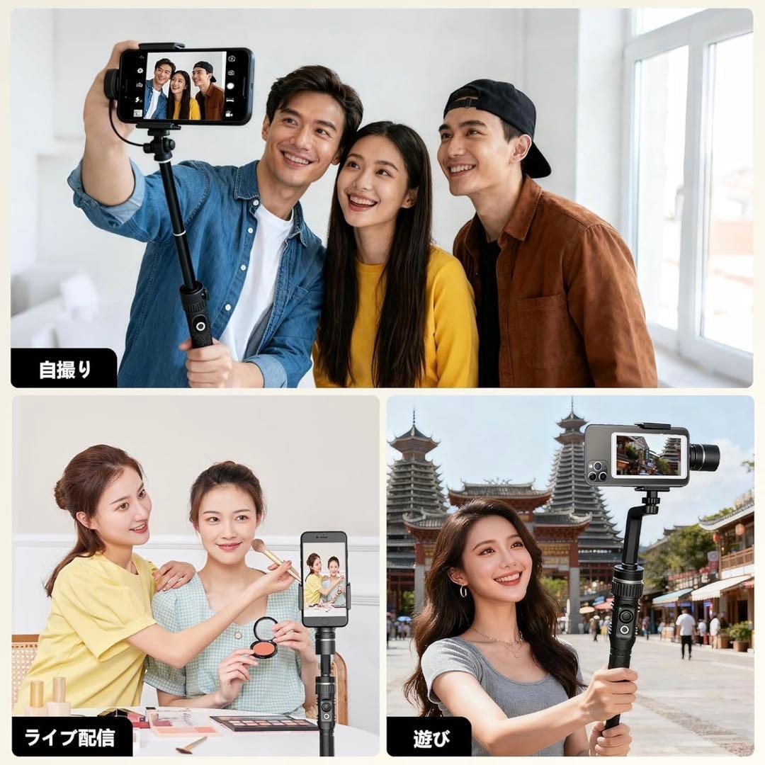 【多彩な機能で、あらゆる創作をサポート】 180度の画面回転で縦横の撮り分けが自由自在。画面比率の切り替え(1:1/全画面)でSNS投稿も思いのまま。内蔵のスピーカーでBGMやナレーションを再生でき、付属の遠隔シャッターボタンで集合写真も全身ショットもタイマー設定なしでパシャリ。あなたの創造性を妨げません。