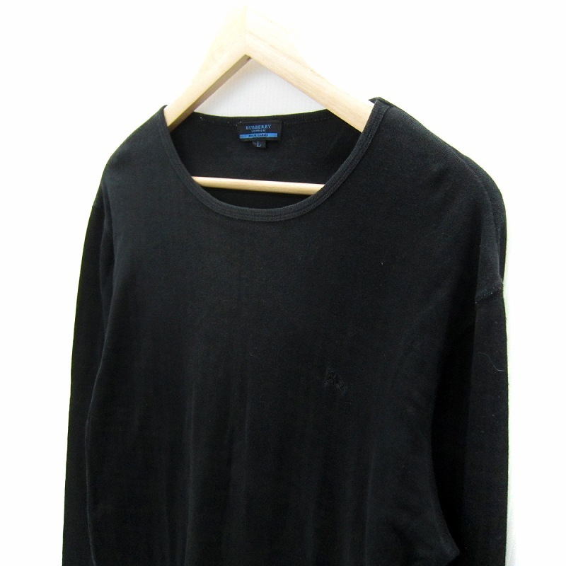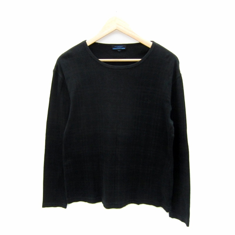 バーバリーブルーレーベル BURBERRY BLUE LABEL カットソー 長袖 ラウンドネック チェック柄 L 黒 ブラック /SY37 ■GY53 メンズ