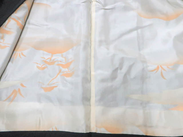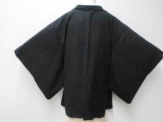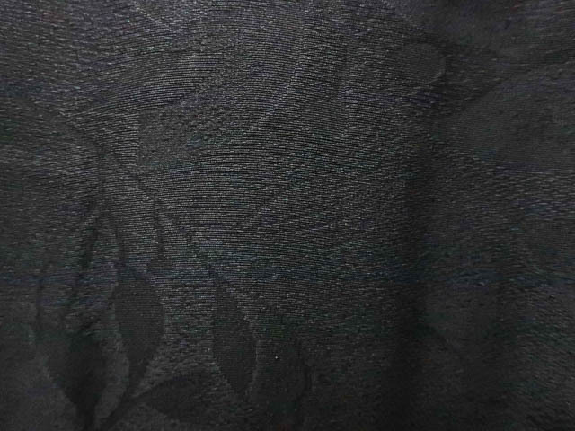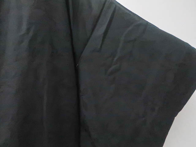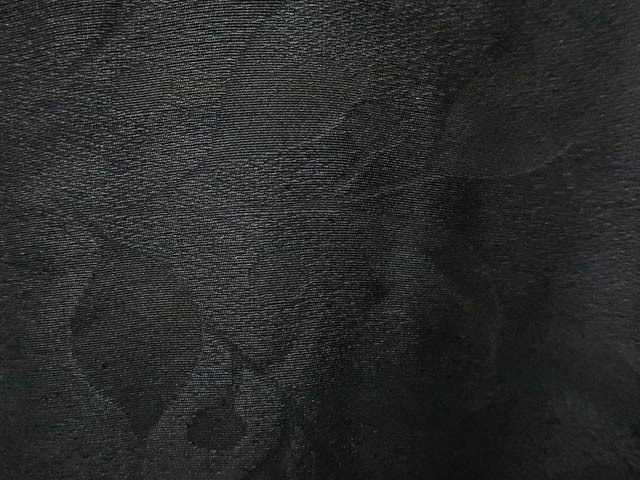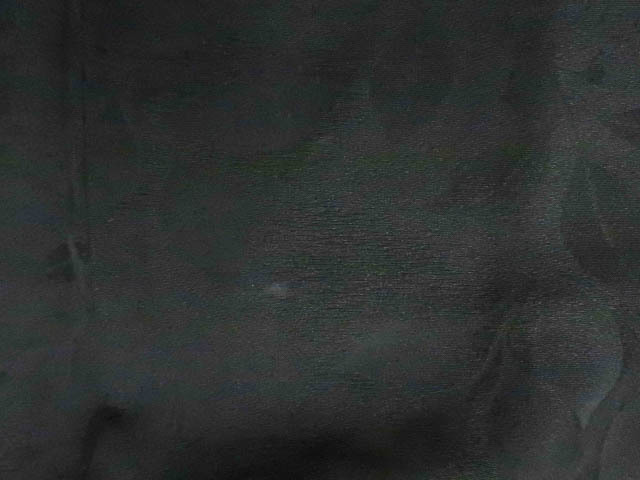リサイクル商品のため、若干しわと、羽裏、後ろ身頃に汚れがございますが着用可能なお品です。 地色は 黒です。 1枚目の画像が近いお色かと思われます。 素材は正絹です。 |