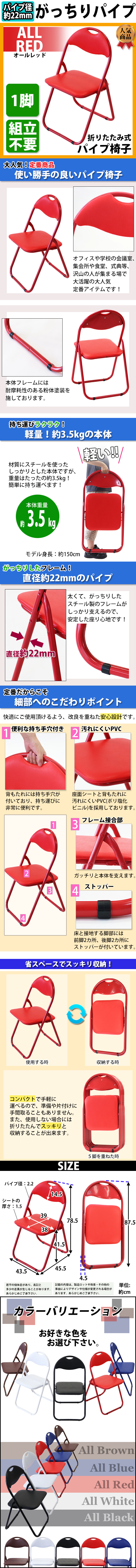 | 商品名 | 送料無料 折りたたみ パイプ椅子 赤 1脚 完成品 組立不要 粉体塗装 パイプイス ミーティングチェア 会議イス 会議椅子 事務椅子 パイプチェア イス いす 背もたれ オフィス 椅子 簡易椅子 折り畳み スチール 軽量 オールレッド xcallred |