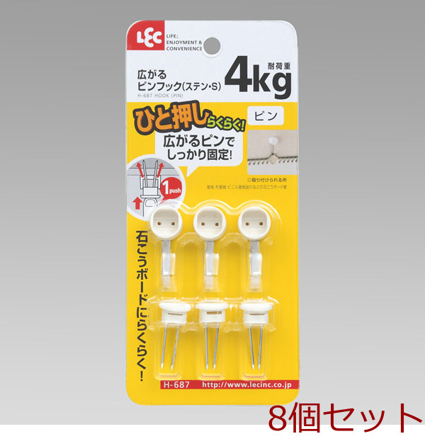 生産地 : 中国 サイズ : 本体サイズ(約):W15xD15xH40mm 取り付け方法:ピン 荷重(約):4kg 包装形態:ブリスター台紙(1台紙3個付) 素材 : 本体:ABS樹脂 フック:ステンレス鋼板 押しピン:ポリプロピレン・ステンレス鋼線 ブランド : レック |