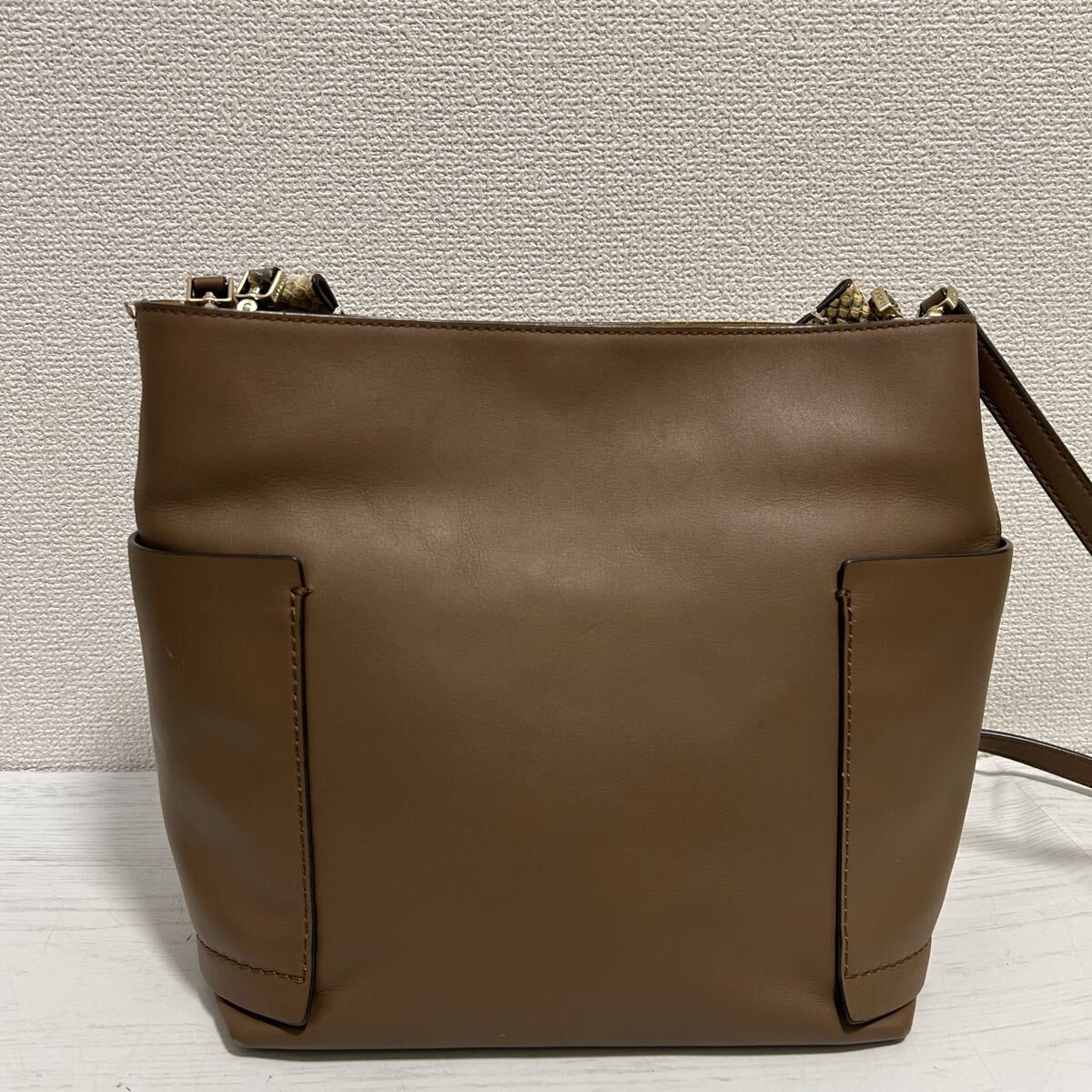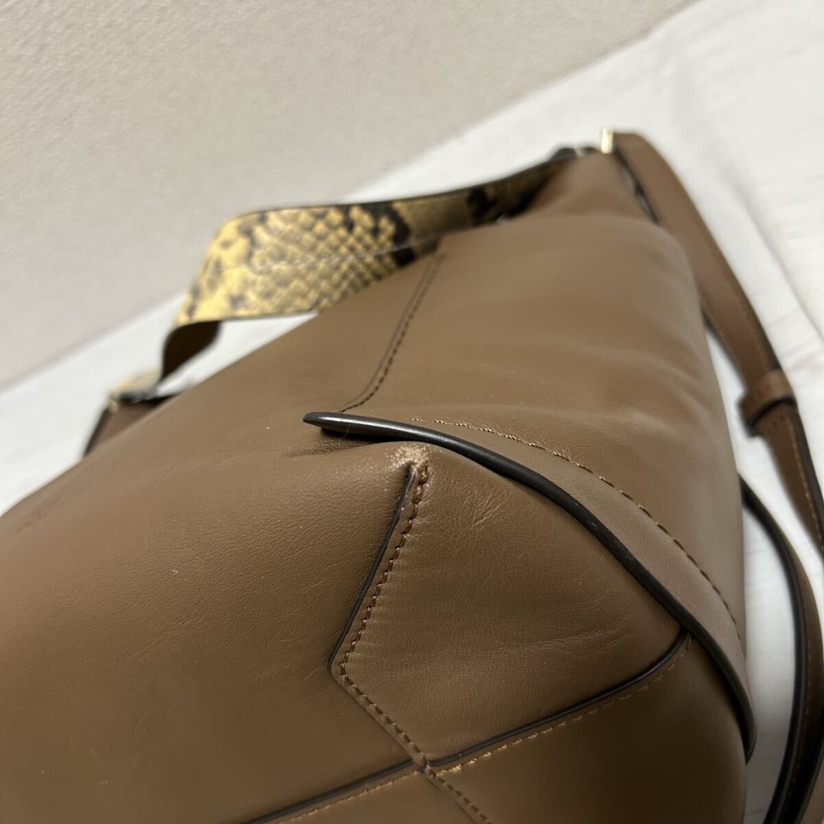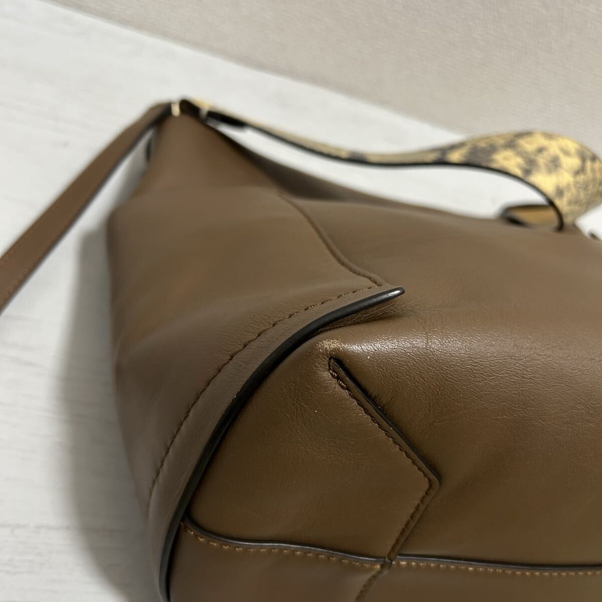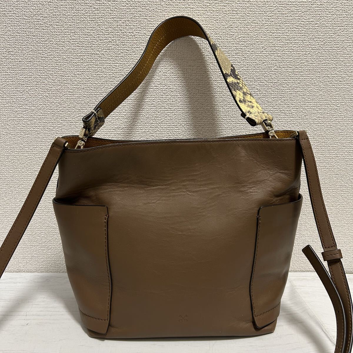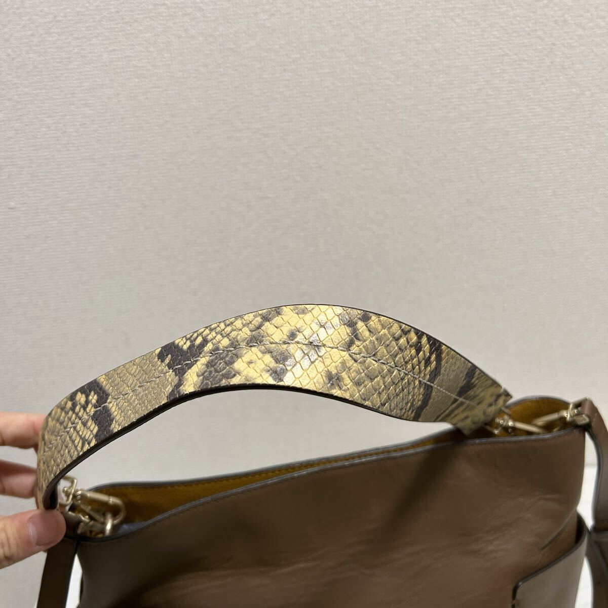 本革製で持ち手のヘビ柄が可愛いデザインです◎