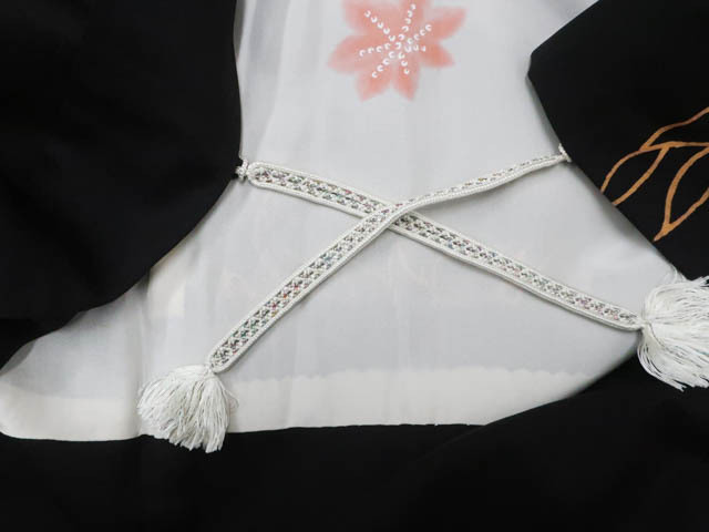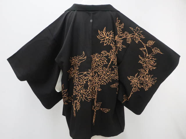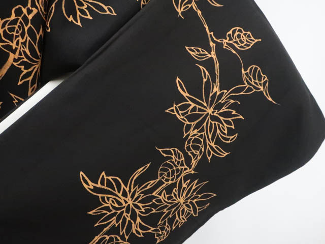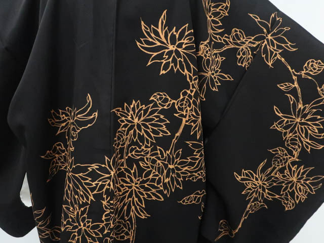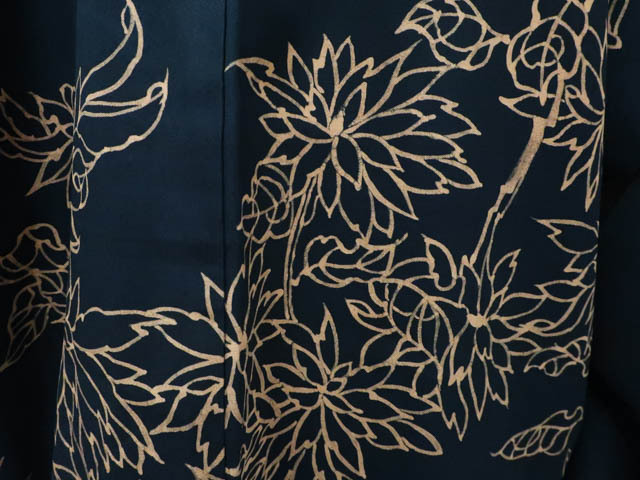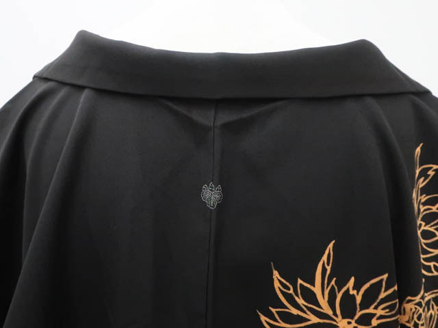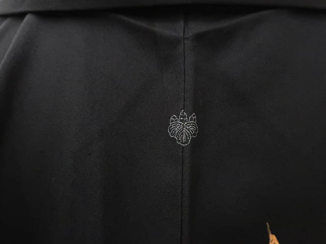 リサイクル商品のため、左後裾返りに解れと薄汚れがございます。 後身に薄汚れがございますが着用可能なお品です。 地色は黒です。 1枚目の画像が近いお色かと思われます。 素材は正絹です。 |