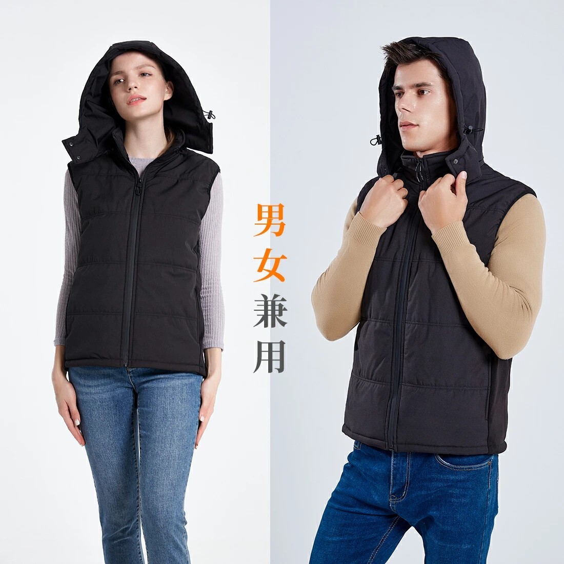 ヒーターベスト電熱ベスト 3段階温度調整 USB給電 前後独立制御 水洗可 丸洗い  着脱式フード付き 男女兼用 速暖 保温 冬用 電熱ジャケット   メンズ レディース ヒートジャケット 防寒対策
