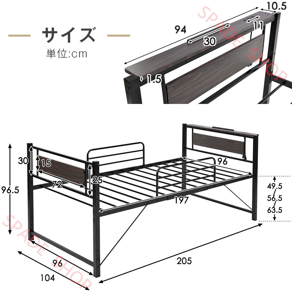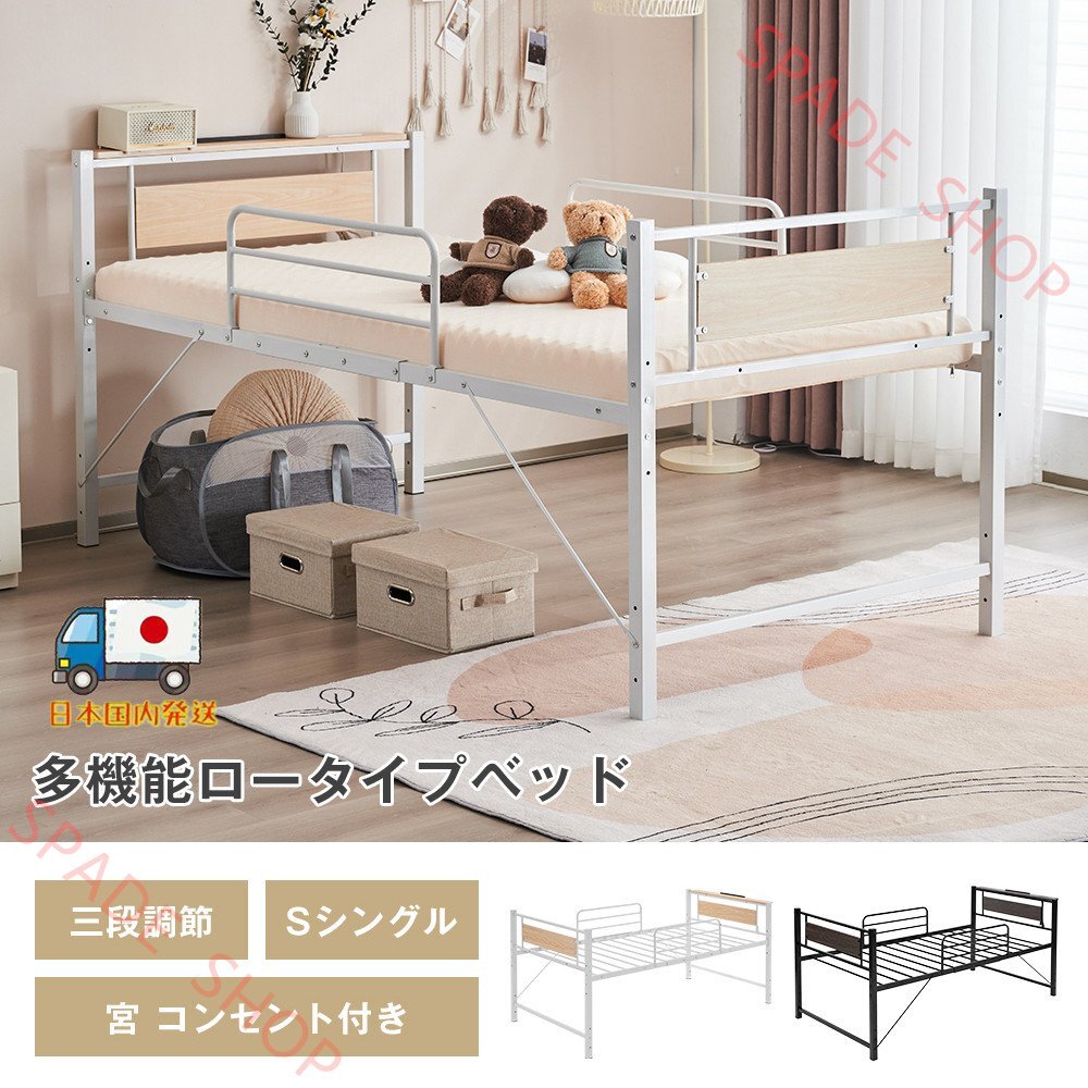 【国内発送】ロータイプベット 宮棚ベッド シングル ロング 高さ調節 3段階パイプ ベットスチール ベッド下収納付きフレームベッド 1人用