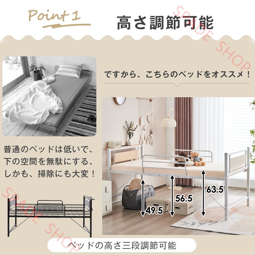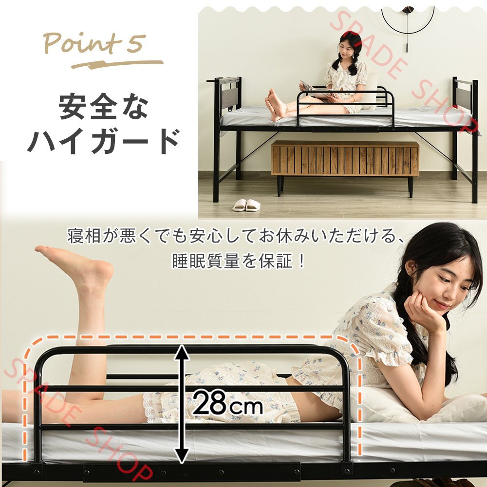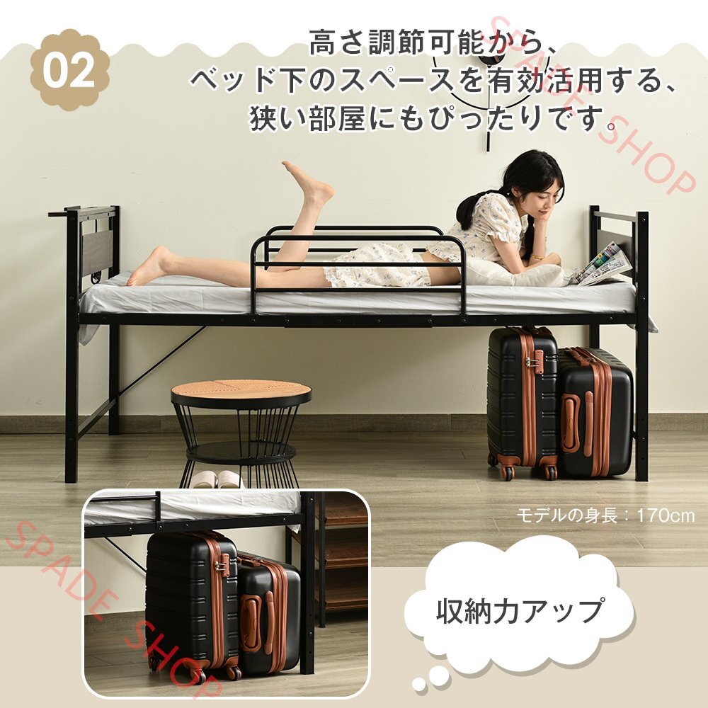 • 【ベッドの高さ調節可能】高さ調節可能から、ベッド下のスペースを有効活用し、お掃除も楽ちん、身長に適して、最も快適な高さに調節していただける。