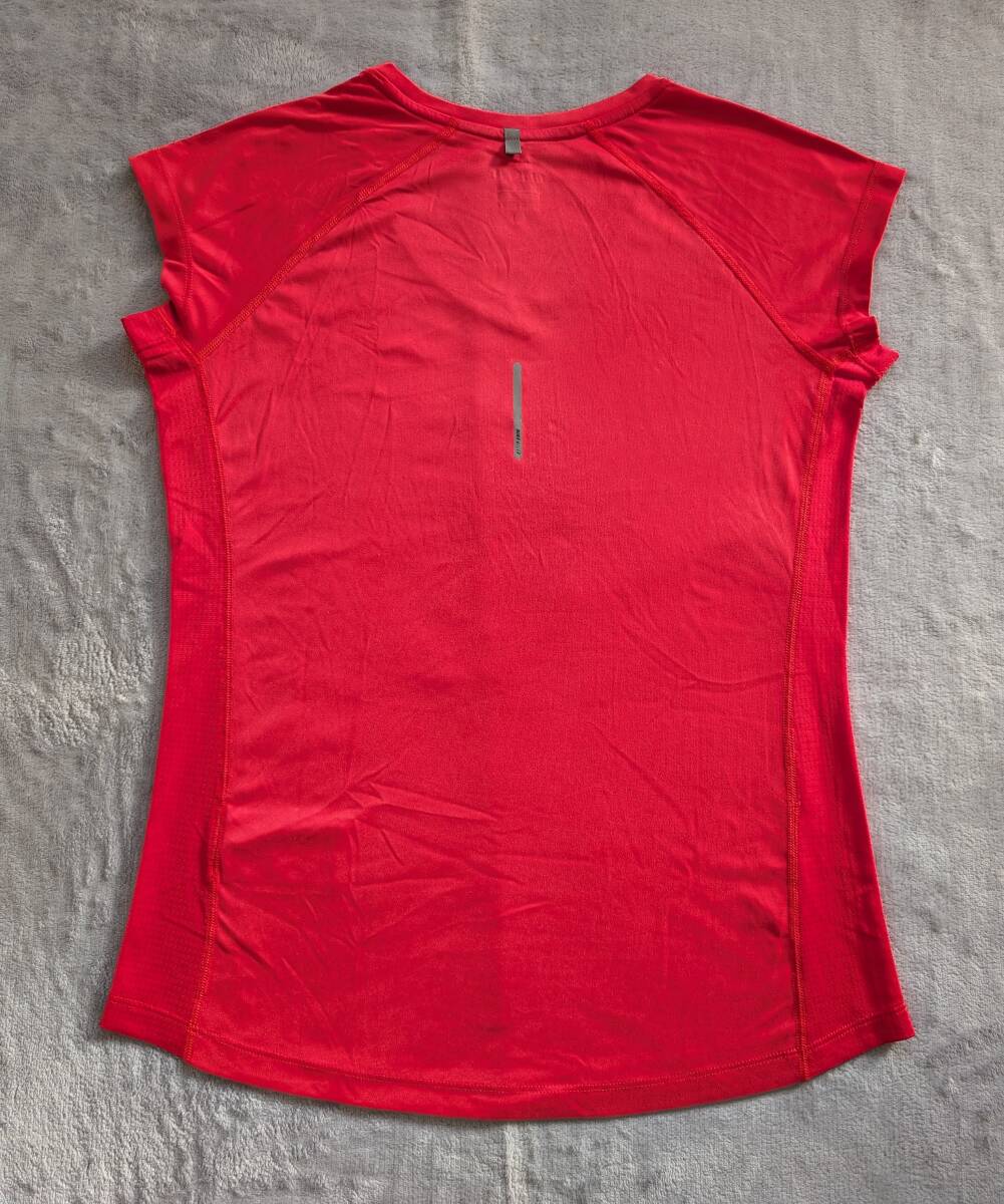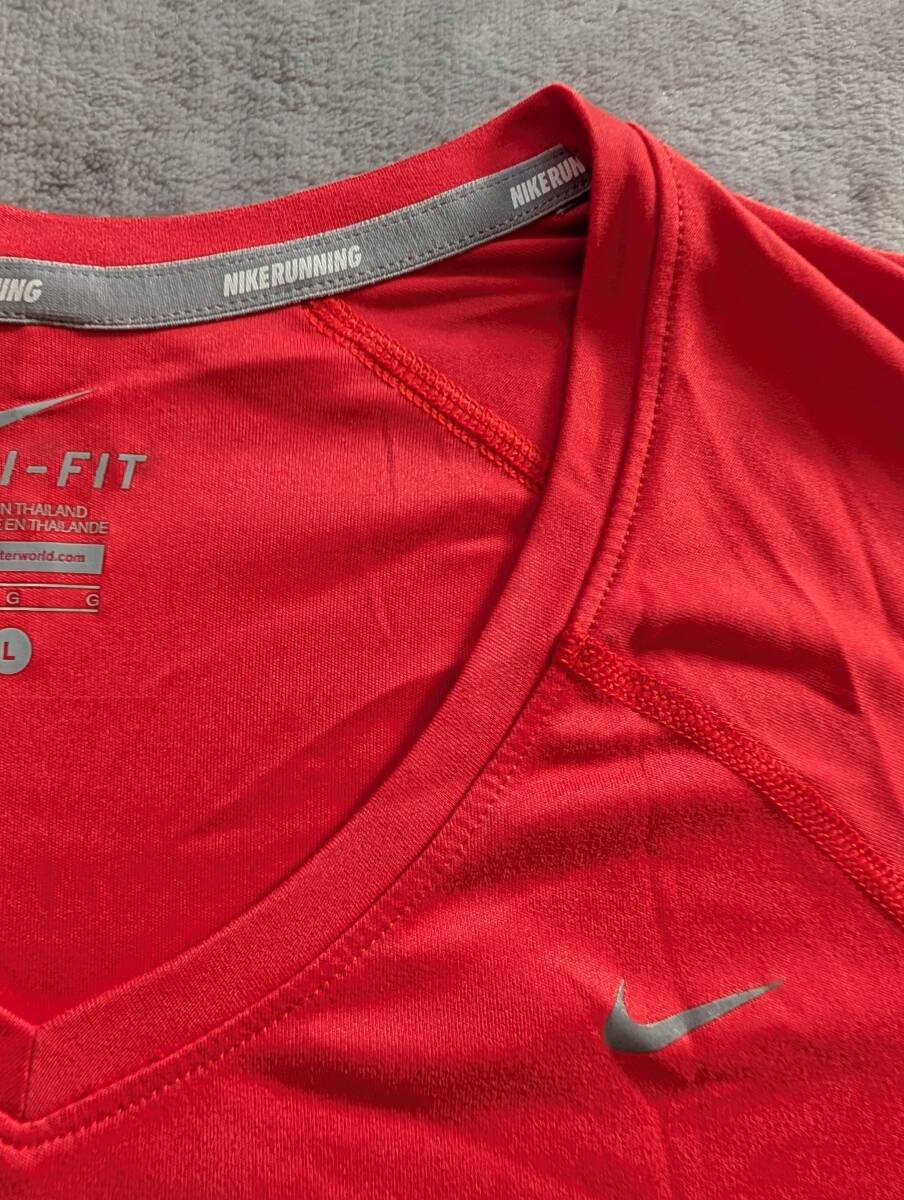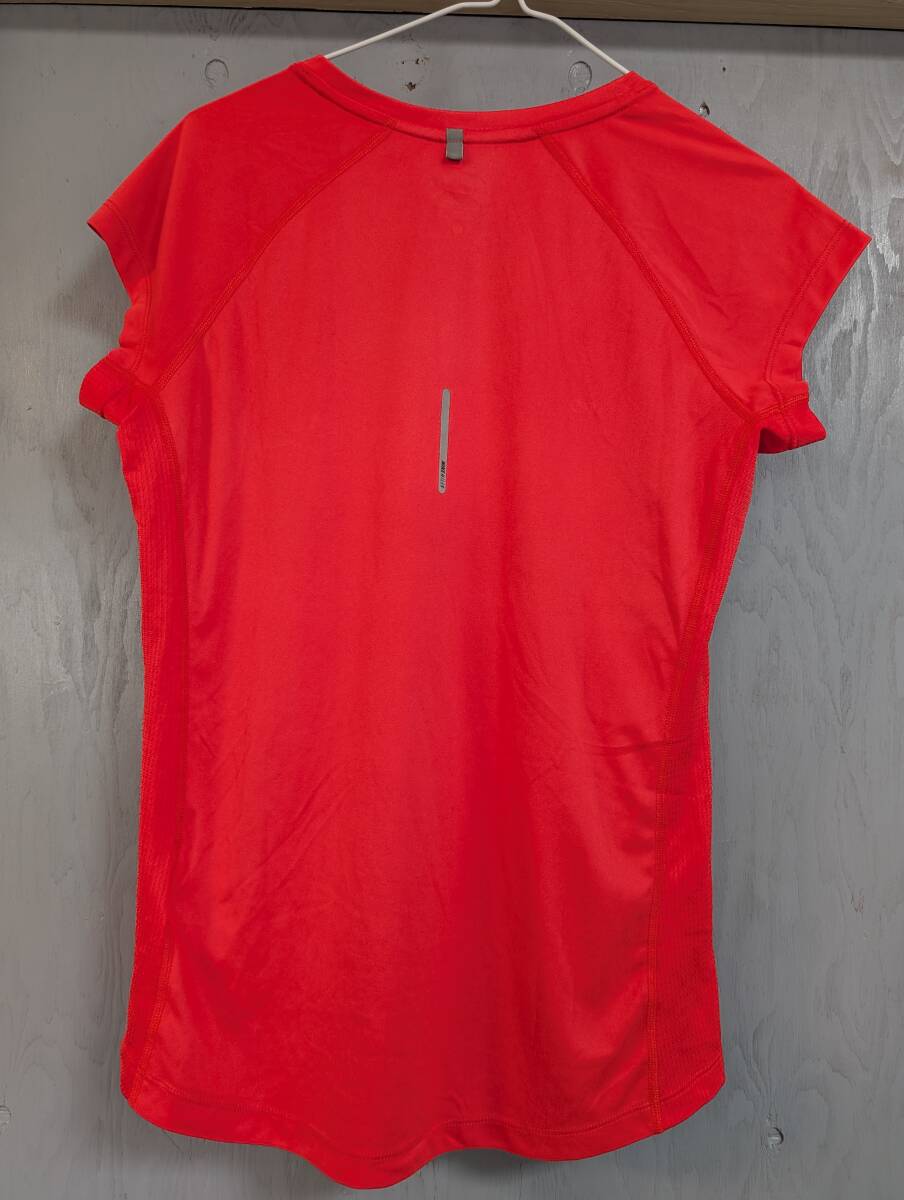 | ランニングTシャツ NIKE ナイキ レディース Lサイズ 着丈:約61㎝、身幅46㎝ (素人採寸の為、参考までに) オレンジ 2回だけ着用しました。その際に、ゼッケンを安全ピンで付けたので、跡が残っています(画像10枚目) 中古品のご理解ご了承いただける方の購入をお願いいたします。 自宅での洗濯済みです。 | ||