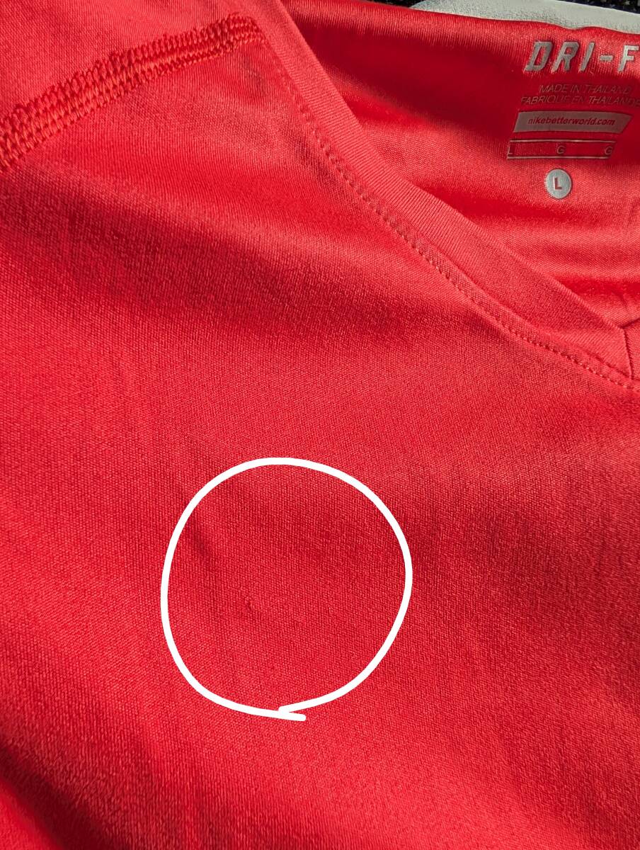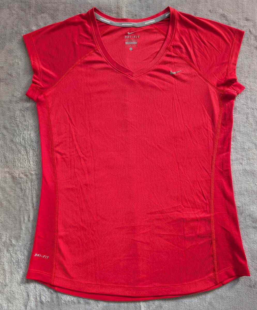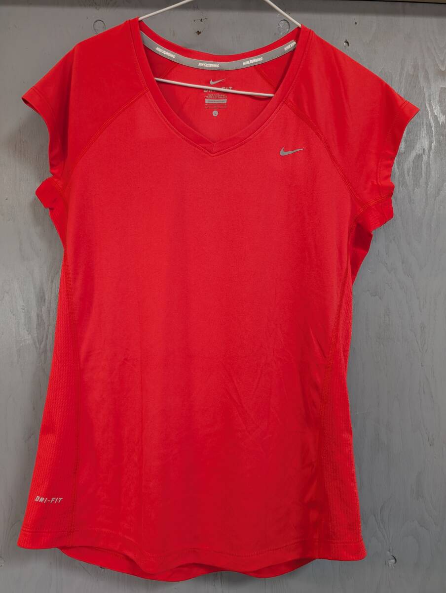 | ランニングTシャツ NIKE ナイキ レディース Lサイズ 着丈:約61㎝、身幅46㎝ (素人採寸の為、参考までに) オレンジ 2回だけ着用しました。その際に、ゼッケンを安全ピンで付けたので、跡が残っています(画像10枚目) 中古品のご理解ご了承いただける方の購入をお願いいたします。 自宅での洗濯済みです。 | ||