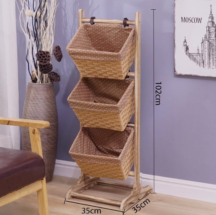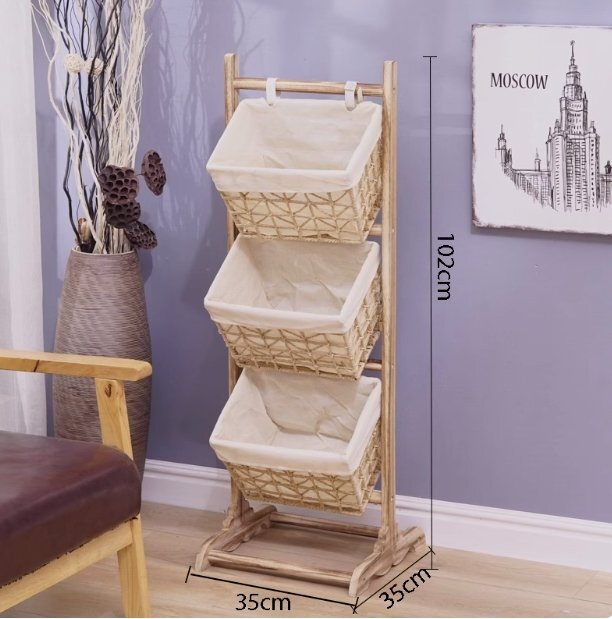 収納かご着床リビング物置棚寝室実木籐編みゴンドラシンプルモダン多層収納棚物置棚
