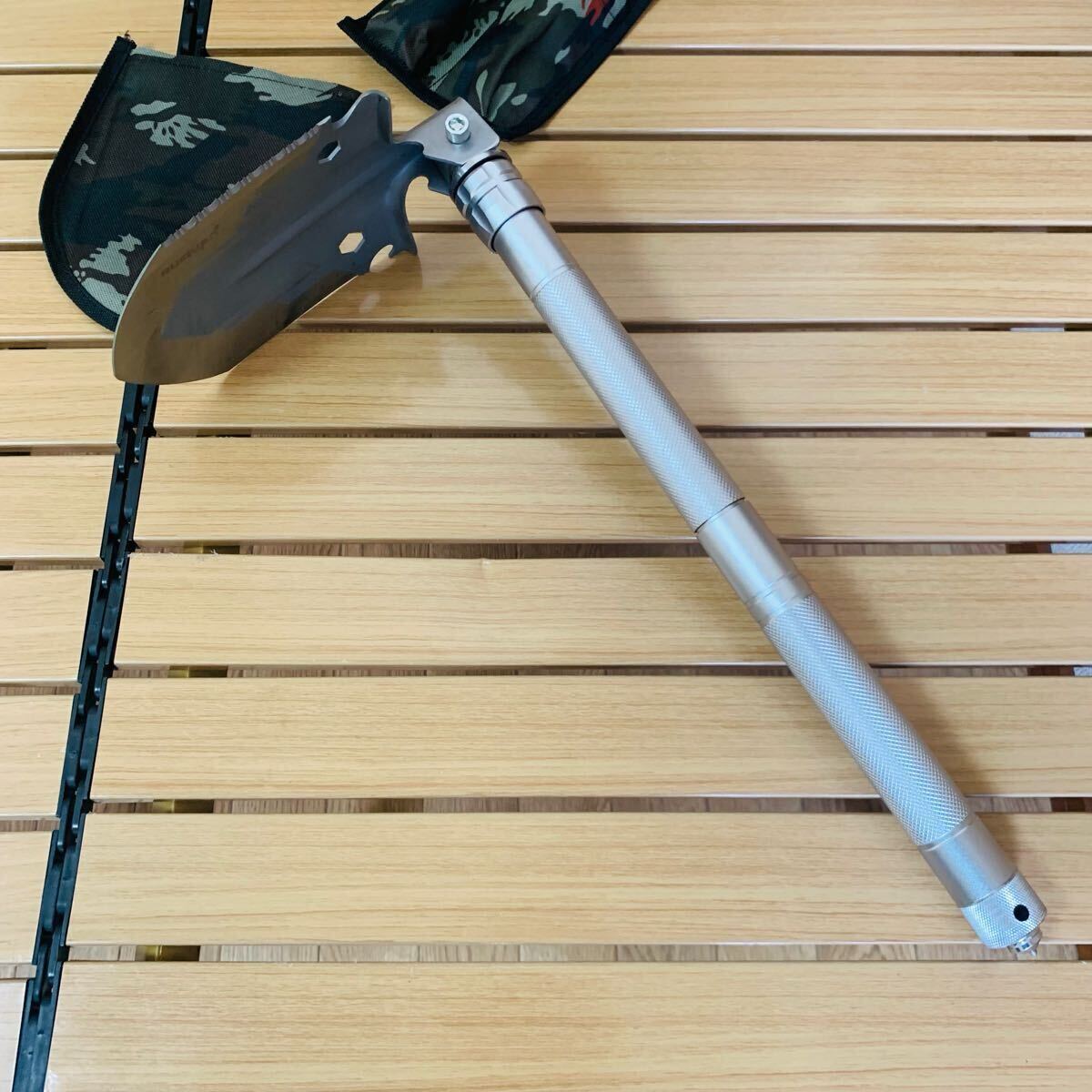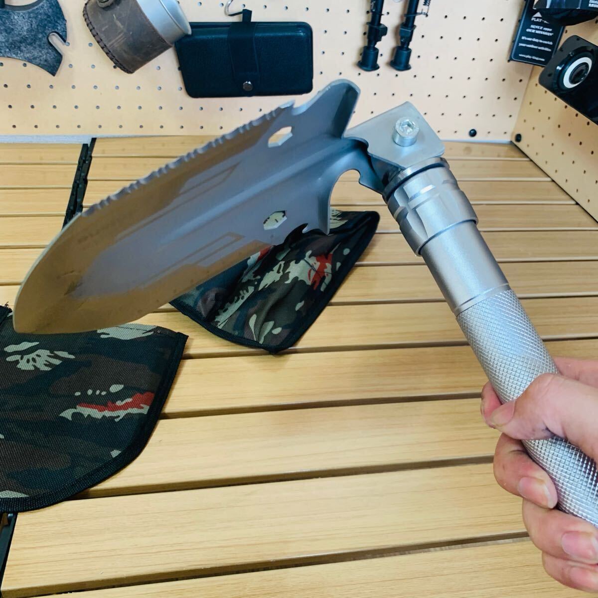 アウトドア アルミ製 トレッキング 折り畳みスコップ 多機能ナイフ 全長60cm 848g 収納ケース付 サバイバル キャンプ 登山EDC