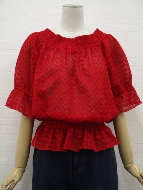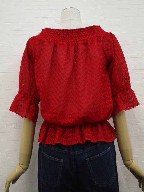 キャンディスリーブ 七分袖 オフショルダー 洗える2Wayレースプルオーバーブラウス F レッド 総柄 【メール便可】