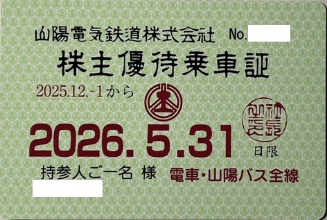 最新 山陽電鉄 株主優待乗車証 定期タイプ