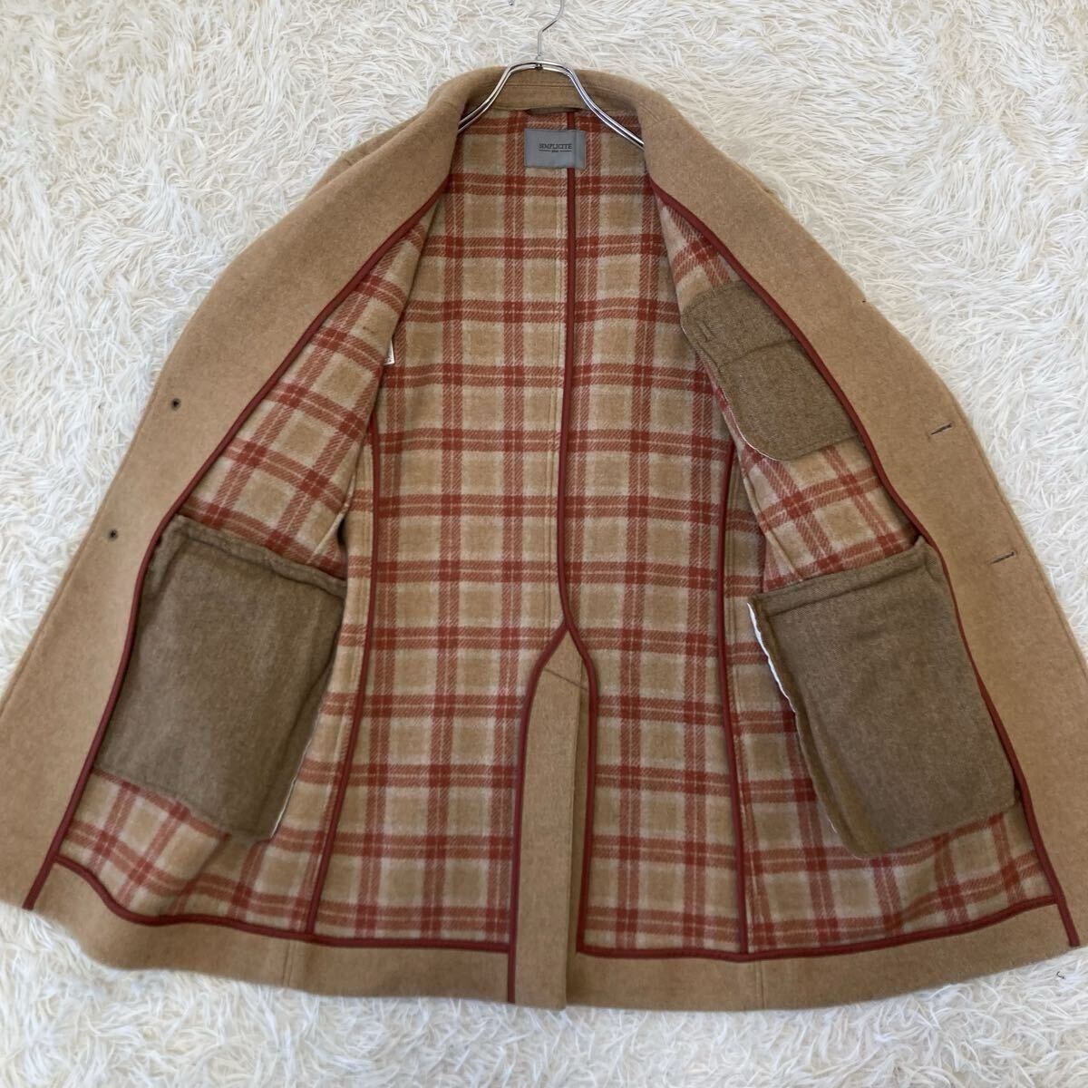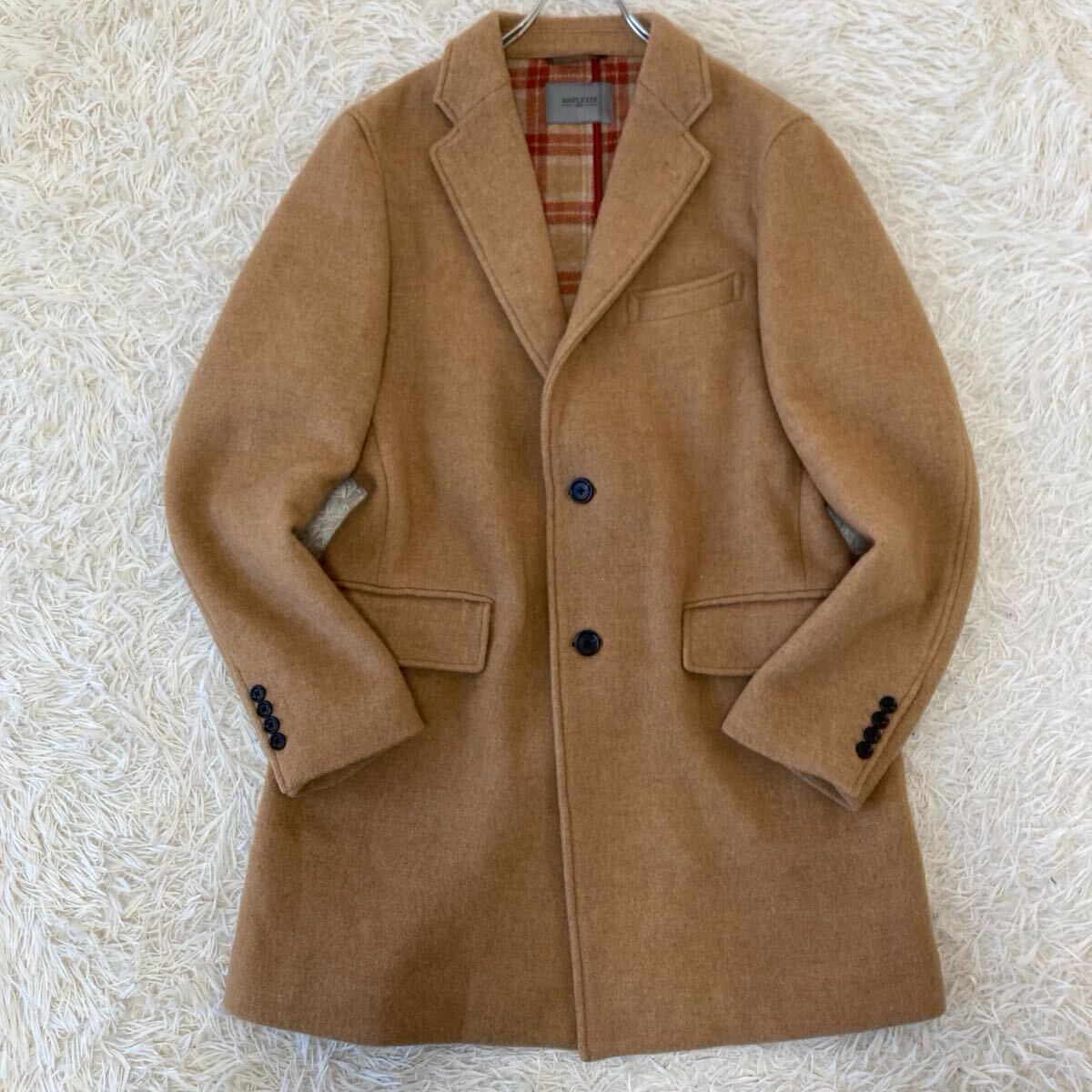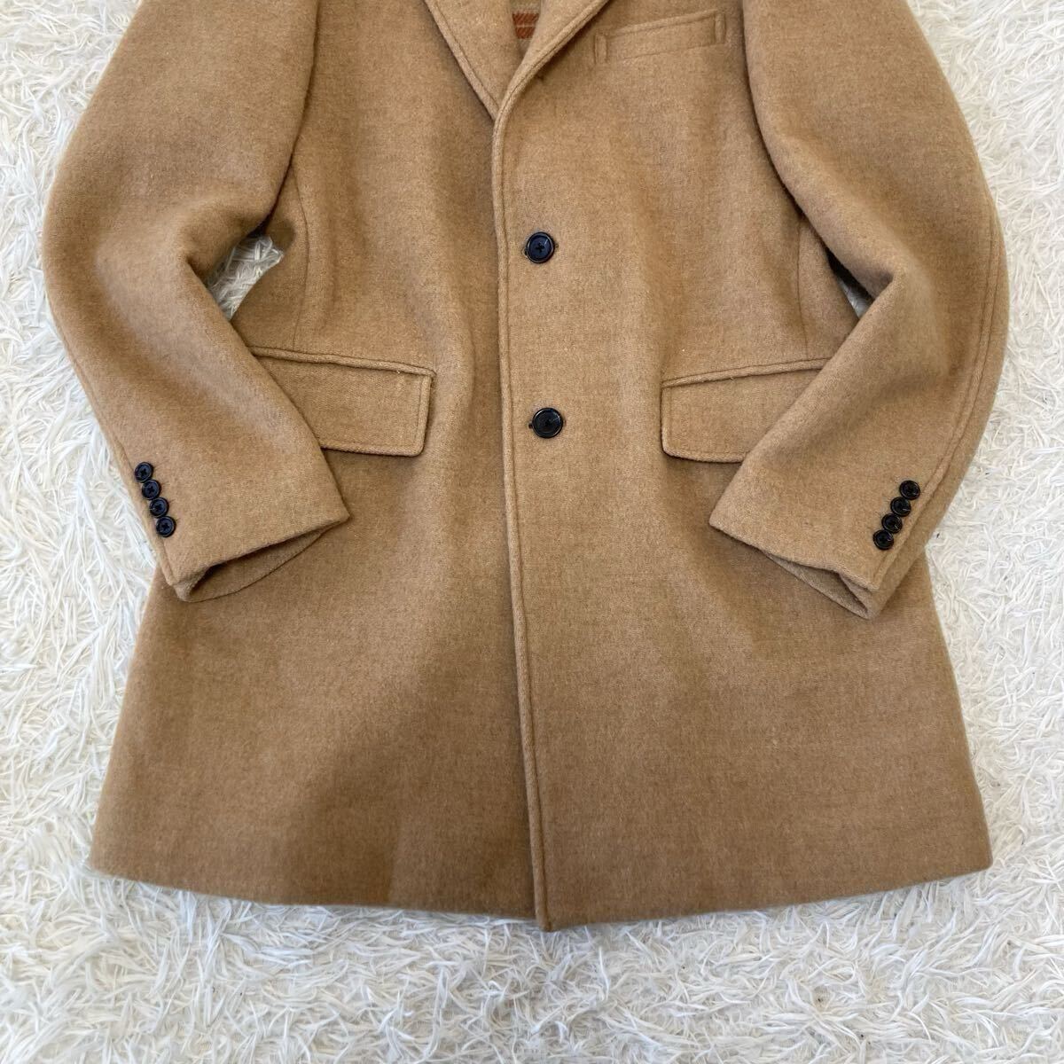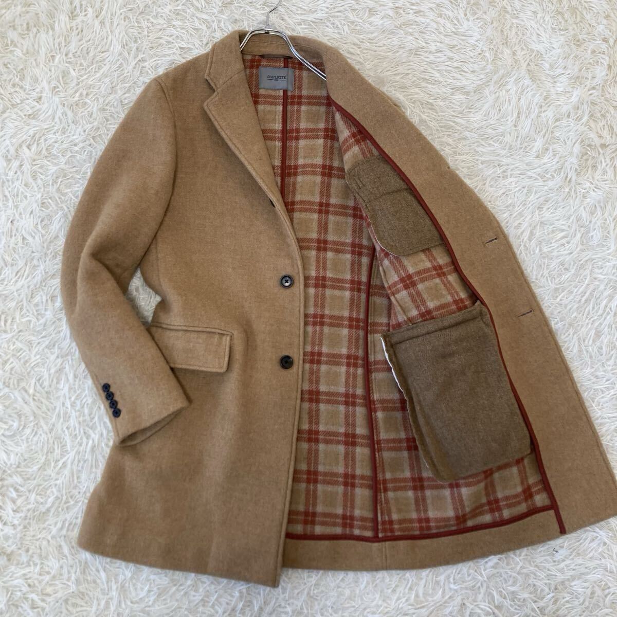 表地はウール66%**を使用した柔らかく温かみのある生地感で、落ち着いた雰囲気と高級感を両立した一着。