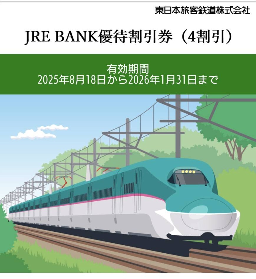 ■JRE BANK優待割引券(4割引)JR東日本■2枚セット即決■有効期限2026年1月31日