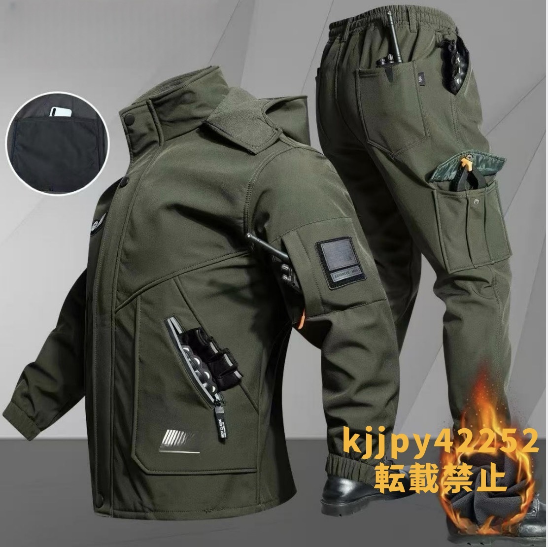 裏起毛 2点セット秋冬新作 防水防風ジャケット 上下セット アウトドアスポーツウェア 釣りセット 釣り服 防寒対策 グリーン L