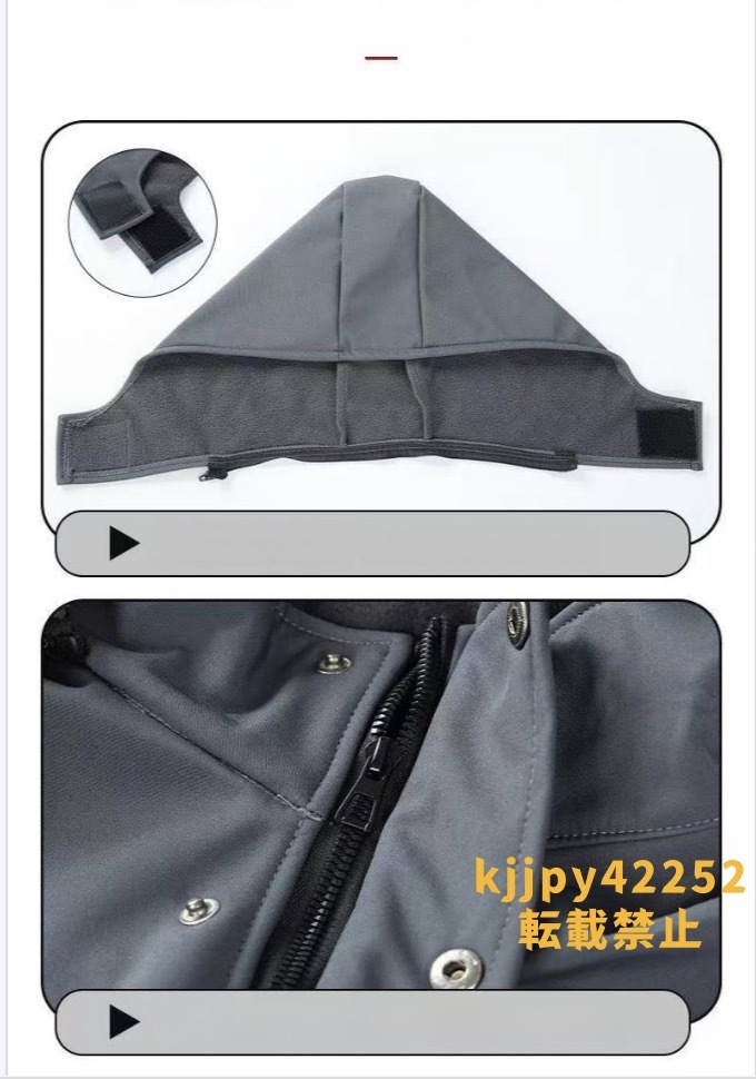 ※ご落札後、ご希望のサイズとカラーをご記入の上、ご送信お願い致します。 商品状態:新品未使用 カラー:画像1 サイズ:S、M、L、XL、2XL、3XL(落札後にお好きなサイズを教えてください) 【サイズ】cm S 胸囲108 着丈66 袖丈55 パンツ丈100 最大ウエスト83 M 胸囲110 着丈68 着丈57 パンツ丈103 最大ウエスト88 L 胸囲114 着丈70 着丈59 パンツ丈106 最大ウエスト92 XL 胸囲118 着丈72 着丈61 パンツ丈107 最大ウエスト96 2XL 胸囲122 着丈74 着丈63 パンツ丈108 最大ウエスト102 3XL 胸囲128 着丈76 着丈65 パンツ丈109 最大ウエスト106 ●素人採寸ですので多少の誤差はお許し下さいませ。 ●実寸は平置実寸。計測の仕方で若干の誤差がありますので参考程度。 1. 用途・シーン: アウトドアや釣りに最適: このジャケットは、防風・防水機能が強化されているため、釣りやハイキング、キャンプなどのアウトドア活動にぴったりです。特に悪天候の中でも快適に過ごせるデザインです。 日常使いにも最適: 日常の外出にも使いやすいです。 2. 防風・防水機能: 防風性能: 冬の強風をしっかり遮断するため、風を通さない素材が使用されています。これにより、寒さから身を守ることができます。 防水性能: 小雨や雪にも対応可能な防水加工が施されており、急な天候の変化にも安心です。 5. 収納ポケット: 多機能ポケット: フロントに複数のポケットがあり、必要な小物(スマホや手袋など)を収納できる便利な設計です。 6. 汎用性: 幅広いアクティビティに対応: 釣り以外にも、アウトドア全般、通勤・通学、旅行など幅広いシーンで活躍するアイテムです。 4. フード付きデザイン: フード付き: フード部分は調整可能で、風や雨を防ぐために役立ちます。また、フードが取り外し可能なデザインも多く、シーンに応じてスタイルを変えることができます。