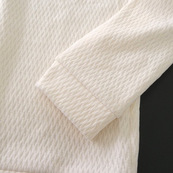 Mサイズ ※写真は別サイズを使用している場合がございます※ ※商品に記載されたサイズ・寸法です※ 肩幅48cm 身幅56cm 袖丈58cm 着丈68cm ※伸縮性のある素材の為、多少の誤差が生じる場合がございます※ ポリエステル99% ポリウレタン1% オフホワイト |