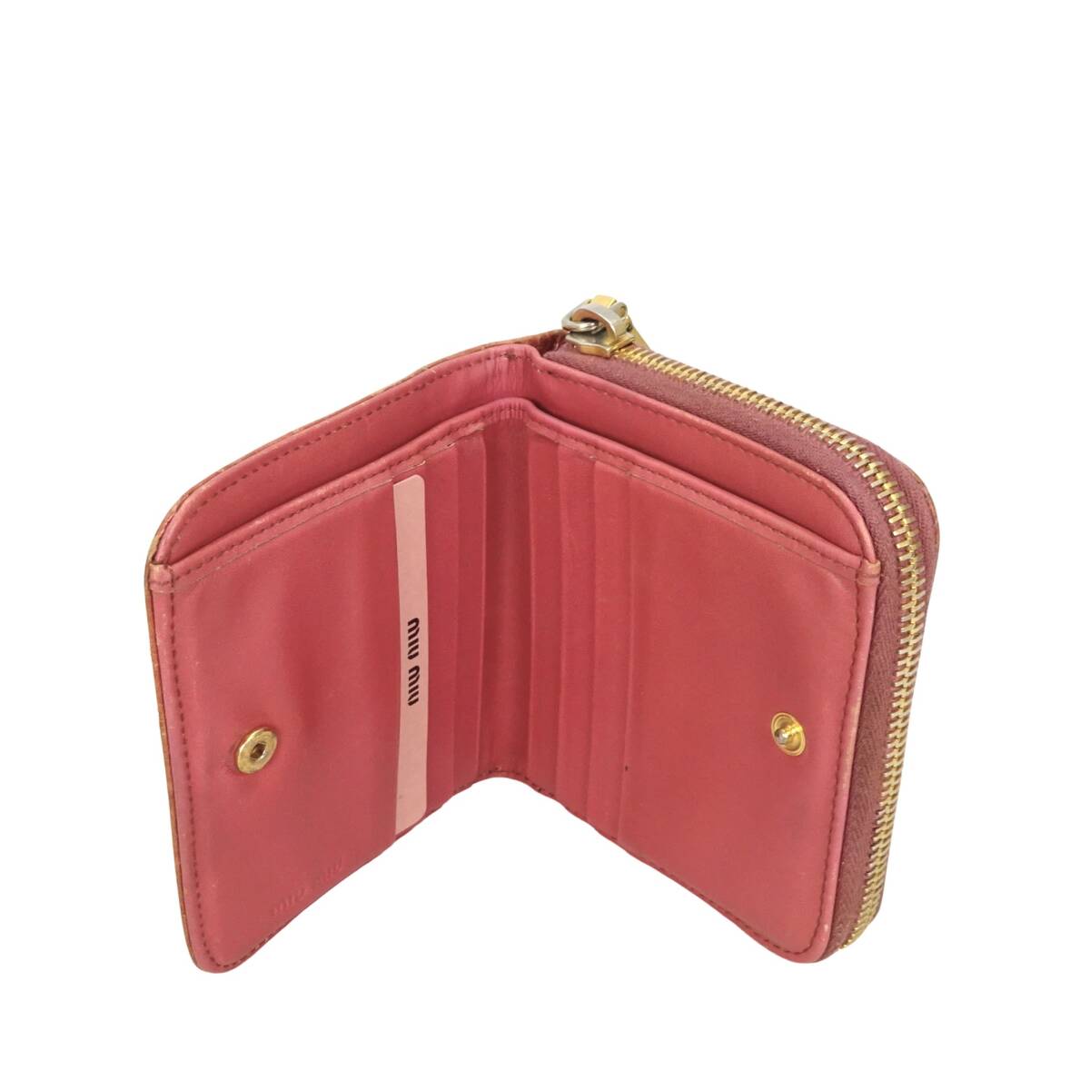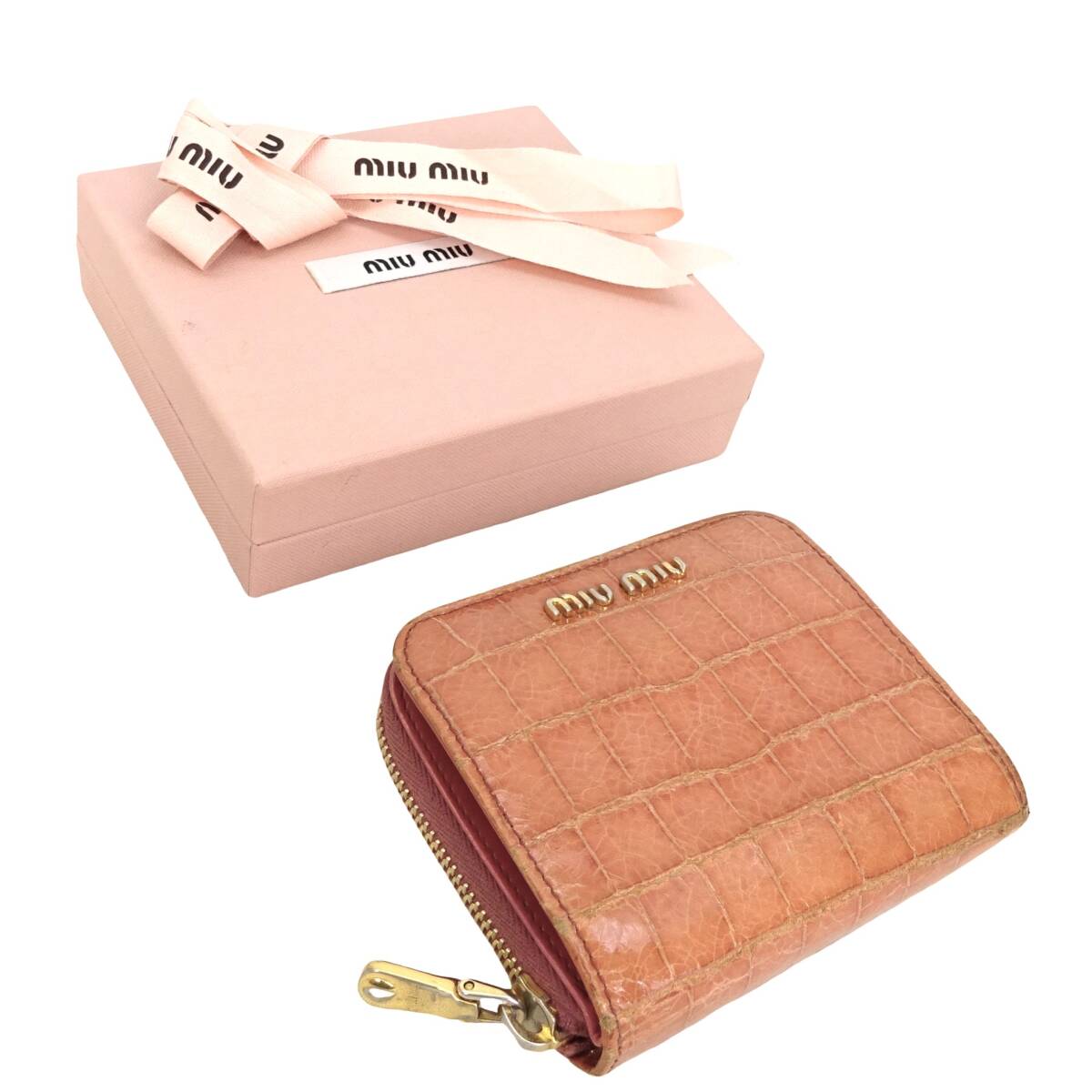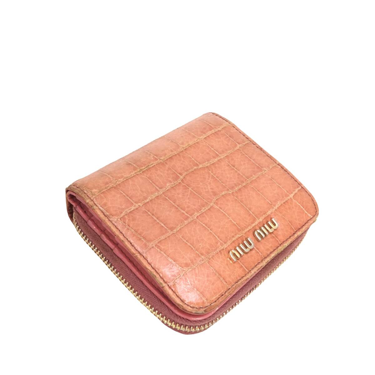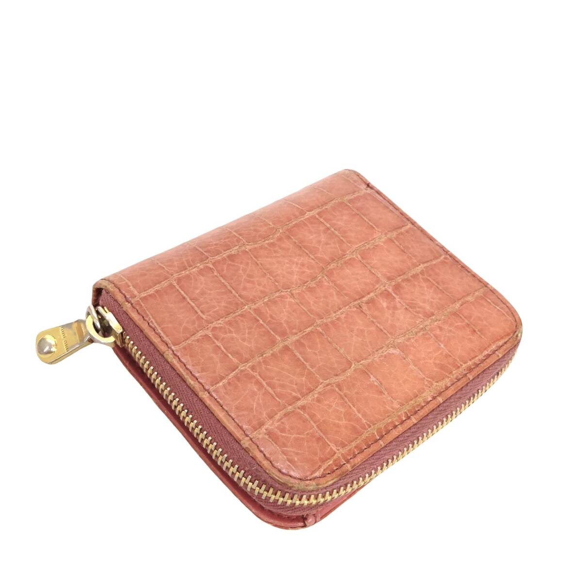 本物 ■ミュウミュウ■ジップ ア ラウンド ウォレット クロコ エンボス ピンク ゴールド ラウンドファスナー財布 /48435