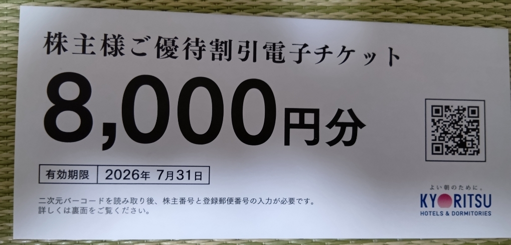 ②URL通知のみ 7/31 共立メンテナンス 8000円分 株主様ご優待割引電子チケット ビジネスホテル クーポン 宿泊 ラビスタ 温泉 ドーミーイン