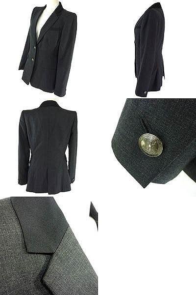 | 上衿がサテン地の切替になったお洒落なジャケット。 メンズライクな胸ポケットにもサテン地が使われております。 ボタンにはアメリカのコインが刻印されており、 細部にまでこだわりの感じられるスタイリッシュな逸品でお薦めです。 腰周りをナチュラルにカバーする長めの着丈も嬉しいポイント。 ブランドタグにSP印がございます。 肩幅約37㎝バスト約90㎝着丈約63㎝袖丈約58㎝ 【サイズ】:(肩幅約37㎝バスト約90㎝着丈約63㎝袖丈約58㎝) 【素 材】:(表地:毛100% 別布:レーヨン60%シルク40%裏地:キュプラ60%ポリエステル40%) 【 色 】:(グレー、黒) 【程 度】:(A) 管理番号 25120113-045 101 003 | ||||