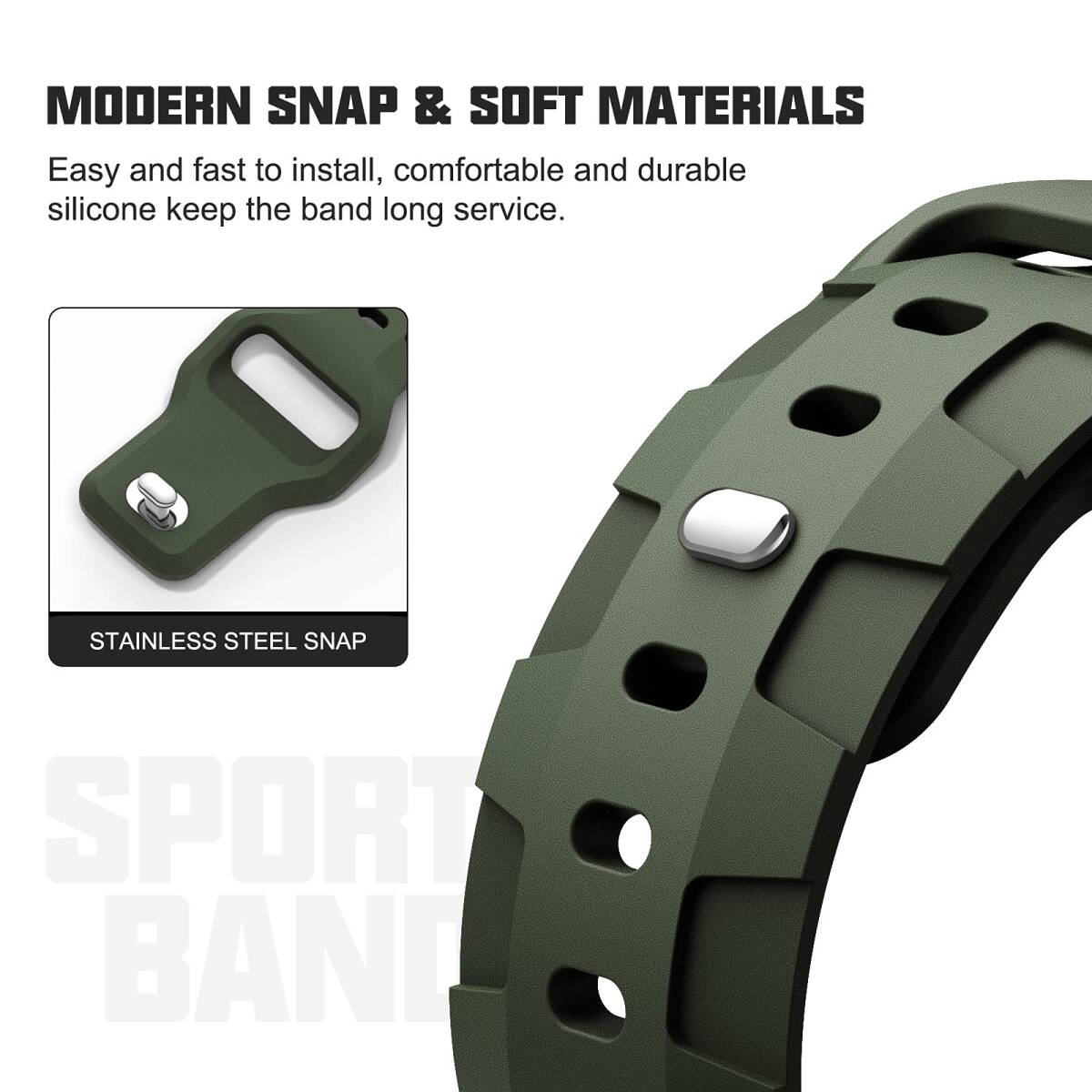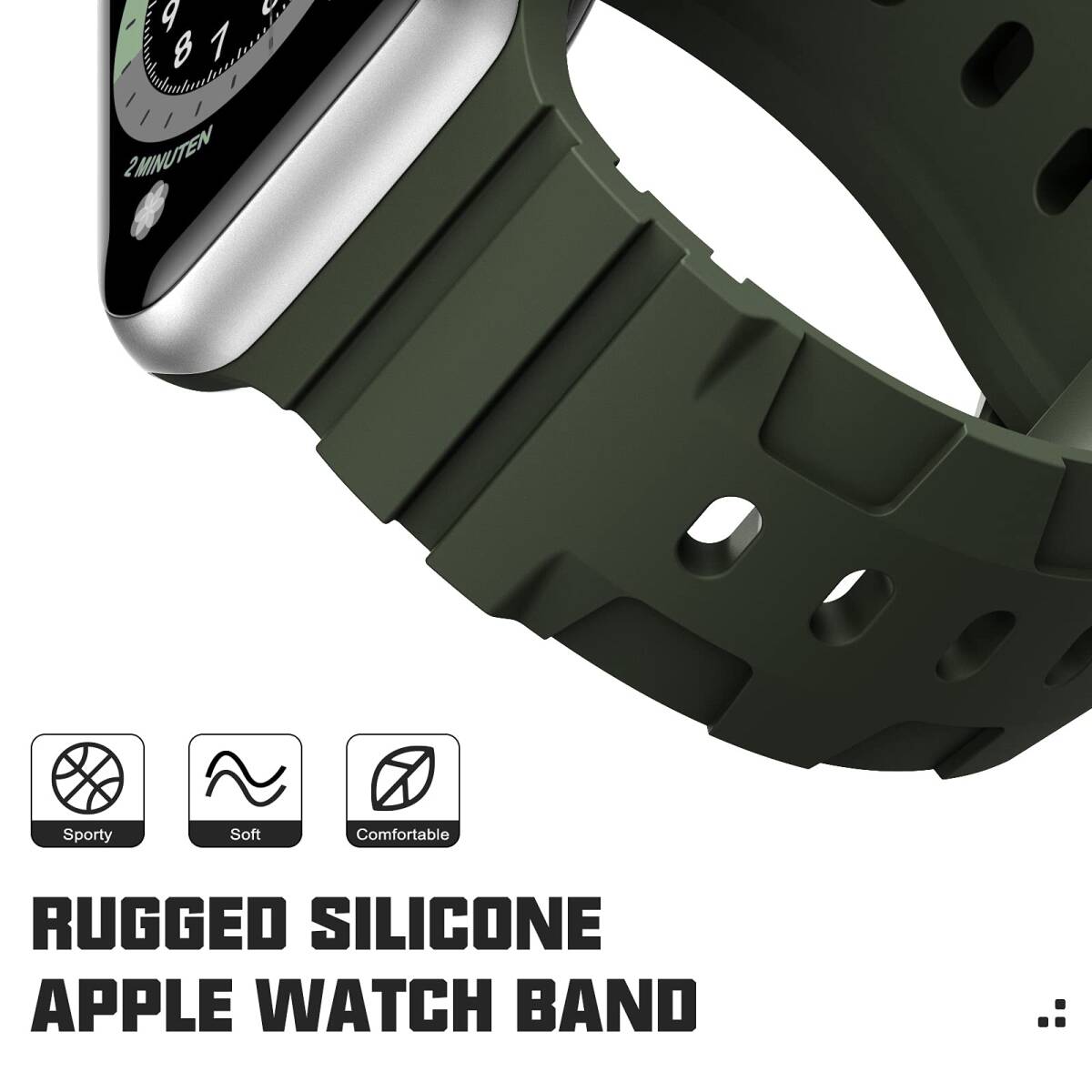 厳選された素材:変形しにくい性質を持った柔軟なプレミアムシリコン素材で、強い力感を備えたユニークなデザインの形状を採用し、Apple watchはより強いスポーツ風を見えます。スポーツ用、日常にもおすすめです