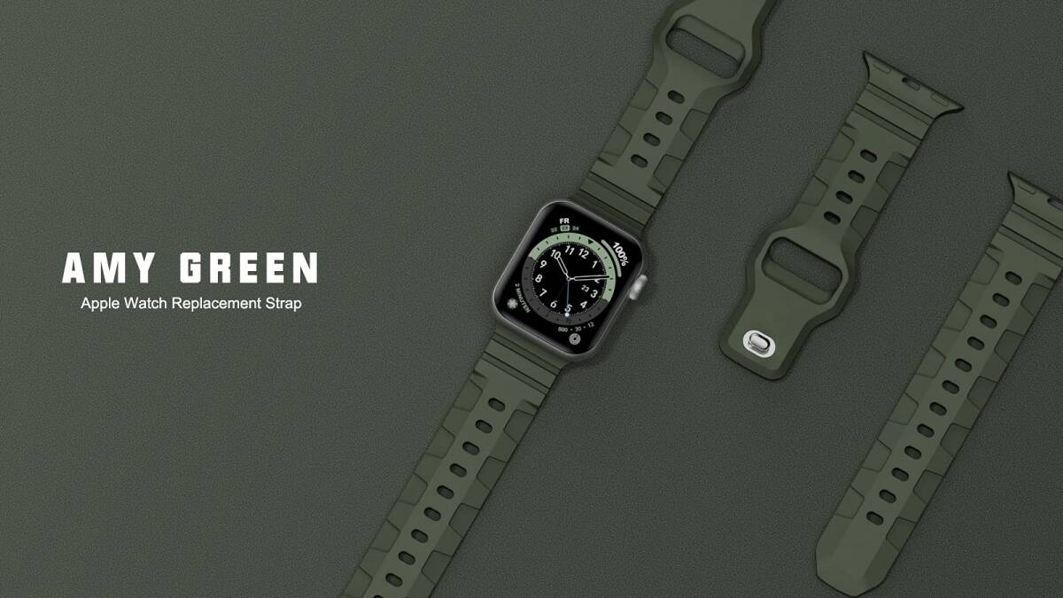 コンパチブル Apple watch バンド 49mm 46mm 45mm 44mm 42mm 交換用 シリコンバンド アップルウォッチベルト スポーツバンド 長さ調整可能 シリコン製 柔らかい 通気 防汗 iWatch Ultra2 1 Series 10 9 8 7 SE 6 5 4 3 2 1に対応 アーミーグリーン