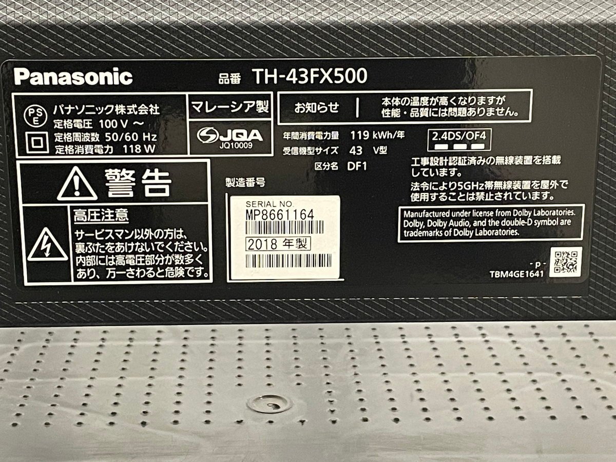 43インチ液晶4Kテレビ Panasonic TH-43FX500(2018年製造)HDR/ ■VIERA★Joshin5437(ジャンク)●1円開始・直接引渡可