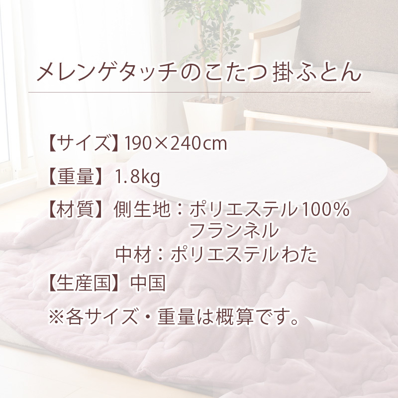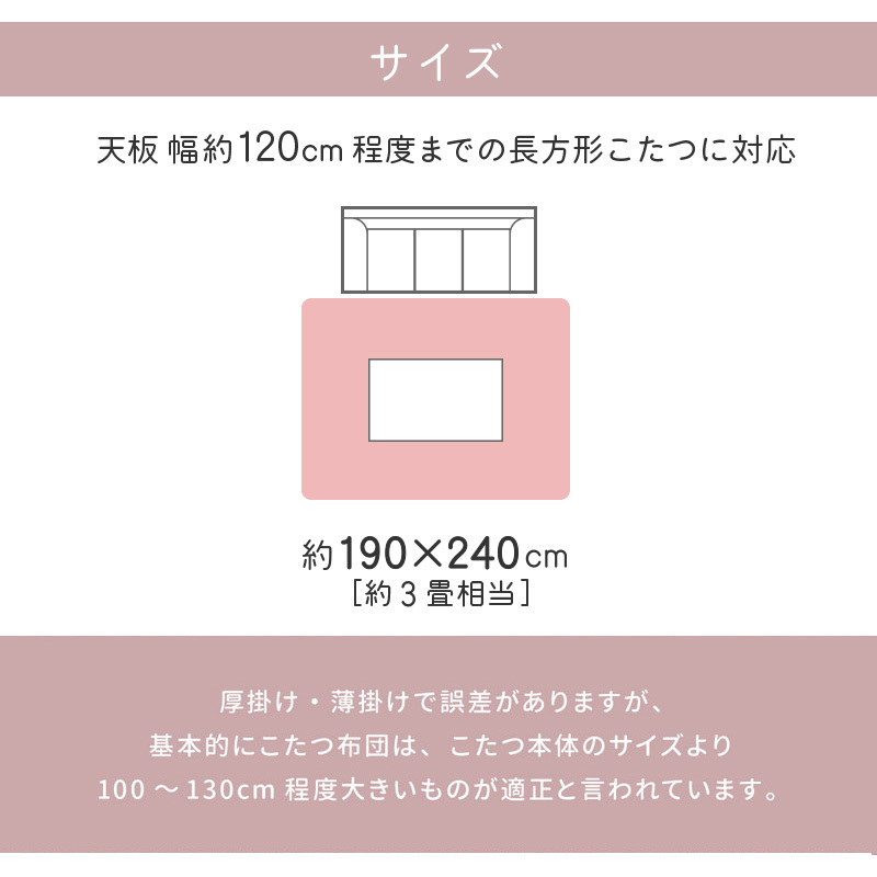 ![]() メレンゲタッチのこたつ掛ふとん 長方形 天板幅120cmまで 190×240cm ピンク ![]()