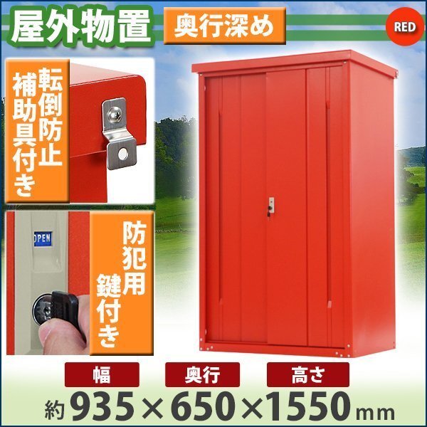| 商品名 | 送料無料 屋外物置 スチール製 家庭用収納庫 鍵付き レッド 幅約935mm×奥行約650mm×高さ約1550mm UVカット 倉庫 納屋 物置き スチール物置 スチール収納庫 ガレージ 収納 可動棚 吊り戸 吊戸 吊り扉 上吊り 吊引き戸 庭 ガーデン 赤 monookishw9d60h15rd |