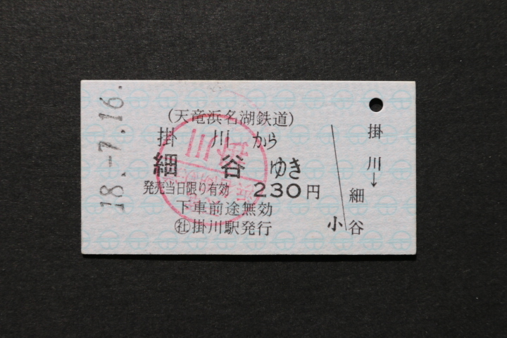 天竜浜中湖鉄道乗車券 掛川から 細谷ゆき 230円