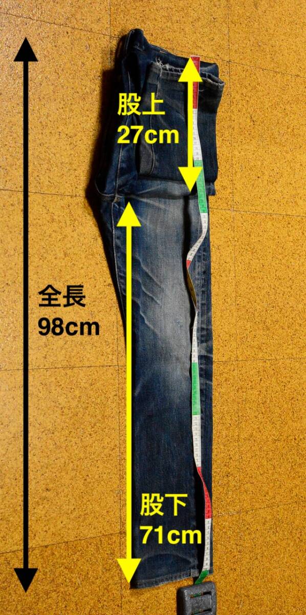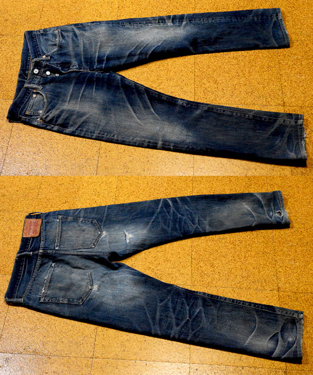 濃紺インディゴ(クリスピーリンス)から長年かけて穿きこみエイジングされたことにより形成された自然穿きの色落ちです。