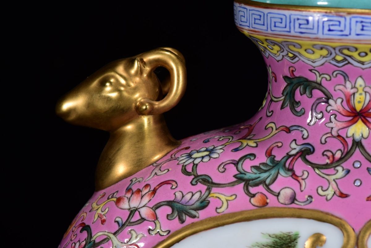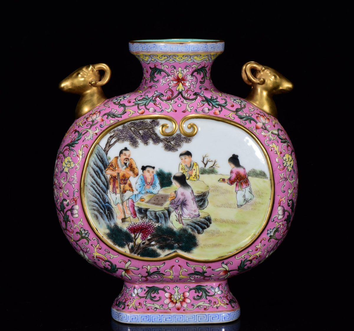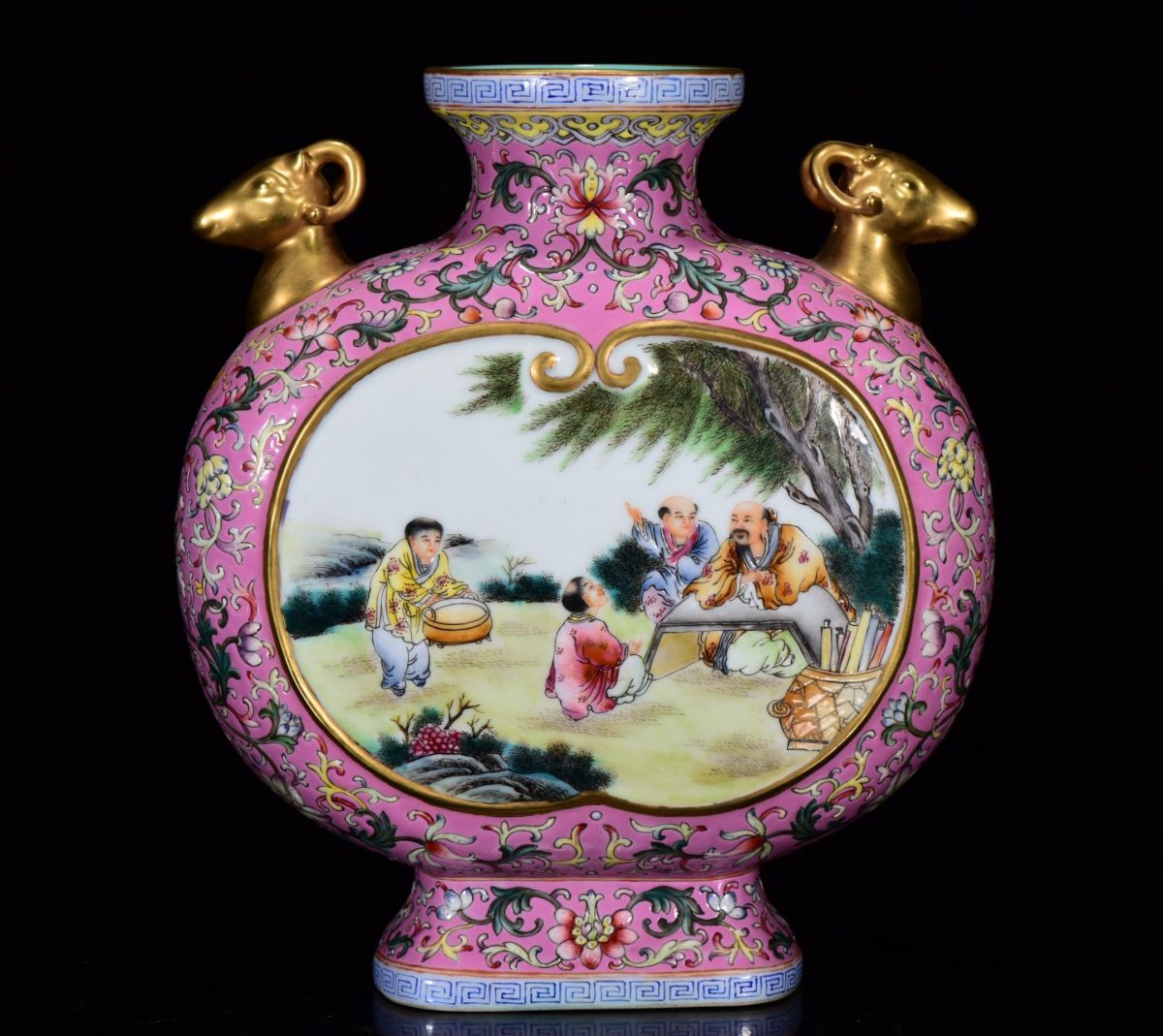永し 清時代 乾隆年製 粉彩描金 人物紋扁瓶 古陶磁器 陶芸 皿 中国陶瓷器 唐瓷 置物擺件 古美術品 収集 旧家蔵出 中国唐物