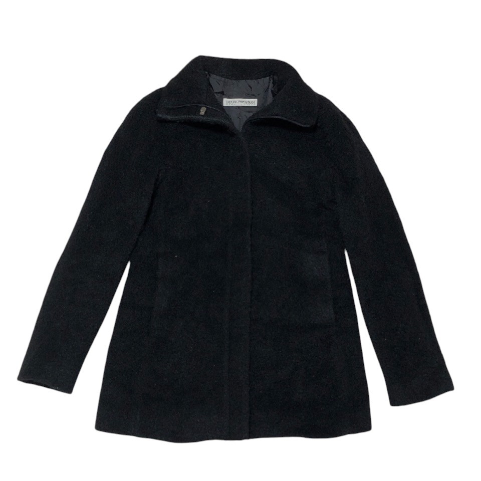 1円~ 80 A-1-35 EMPORIO ARMANI エンポリオアルマーニ ミドル丈 コート ブラック 羊毛 ウール サイズ38