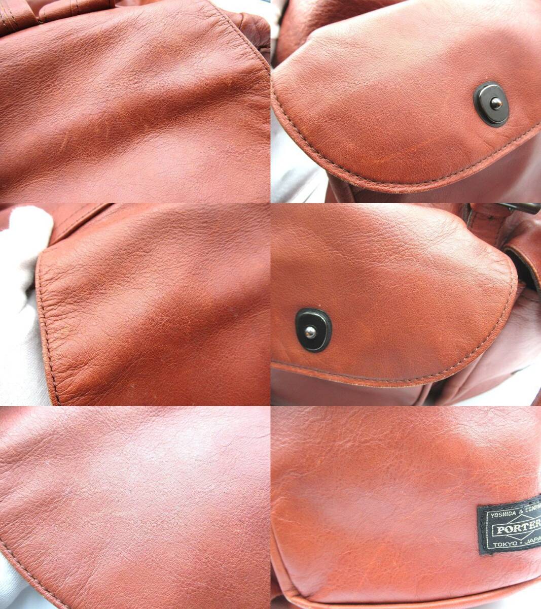 | ◇PORTER◇ポーター◇ 吉田カバン レザー リュック バックパック ブラウン系 本革 革製品 中古 レディース メンズ 管理番号:35141/H8S1 *付属品* 無し ※画像に無いものはお付けしません。 *サイズ(約)* ・縦 32.5cm×横(底面) 32cm×マチ(底面) 11.5cm ※素人採寸の為、誤差有。 *仕様* ・フラップ式 ・ファスナー開閉 ・内ポケット×1 ・外ポケット×2 ※画像にてご確認ください。 【状態】 店舗買取品/保管品/中古になります。 角擦れ・ひっかき傷・擦れ傷・レザーの剥げ・ 変色・コバのひび割れ・劣化・型崩れ・ショルダー紐のヨレ・ クセ・汚れ・その他ダメージがあります。 詳しい状態は写真でご確認下さい。 ※画像に写りきらない箇所もございます。 ※商品の状態の説明はあくまで出品者の主観に基づいた説明です。 ※店舗保管品です。 ※新品の様な完璧な状態では御座いません。 ※ご理解頂ける方のご入札をお願い致します。 ご入札前に必ず全文をお読みになり、 お客様が十分にご納得された上でのご入札、 ノークレーム・ノーリターンでお願い致します。 入札の取消は行っておりませんのでご注意下さい。 (ご入札された時点で同意頂いたものとします) ※画像のものがすべてになります。 ※店舗保管品の為、多少のスレキズ等ある場合が御座います。 ※専門知識が無いため質問にお答えできない場合が御座います。 ※素人検品・撮影の為写真に写り切らない汚れ・キズがある場合が御座います。 ※新品の様な100%完璧な状態では御座いません。 ※念入りに検品しておりますが見落としがある場合が御座います。 ※神経質な方、完璧をお求めの方は入札をお控え下さい。 ※御理解頂ける方のご入札をお願い致します。 ※当店はまとめてお取引には対応致しません。 全て単品でのお取引となります。 ※同梱は行っておりません。 ※商品管理上、取り置きは致しませんのでご了承下さい。 | |||