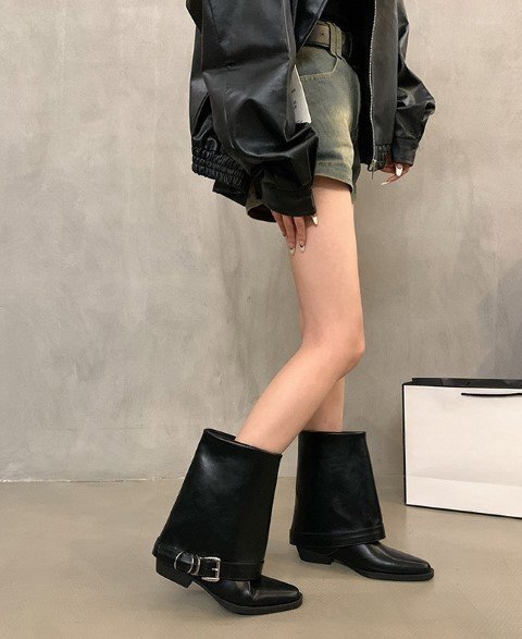 ・美脚効果抜群のポインテッドトゥ& トレンドのフットカバーレイヤードデザインブーツです。