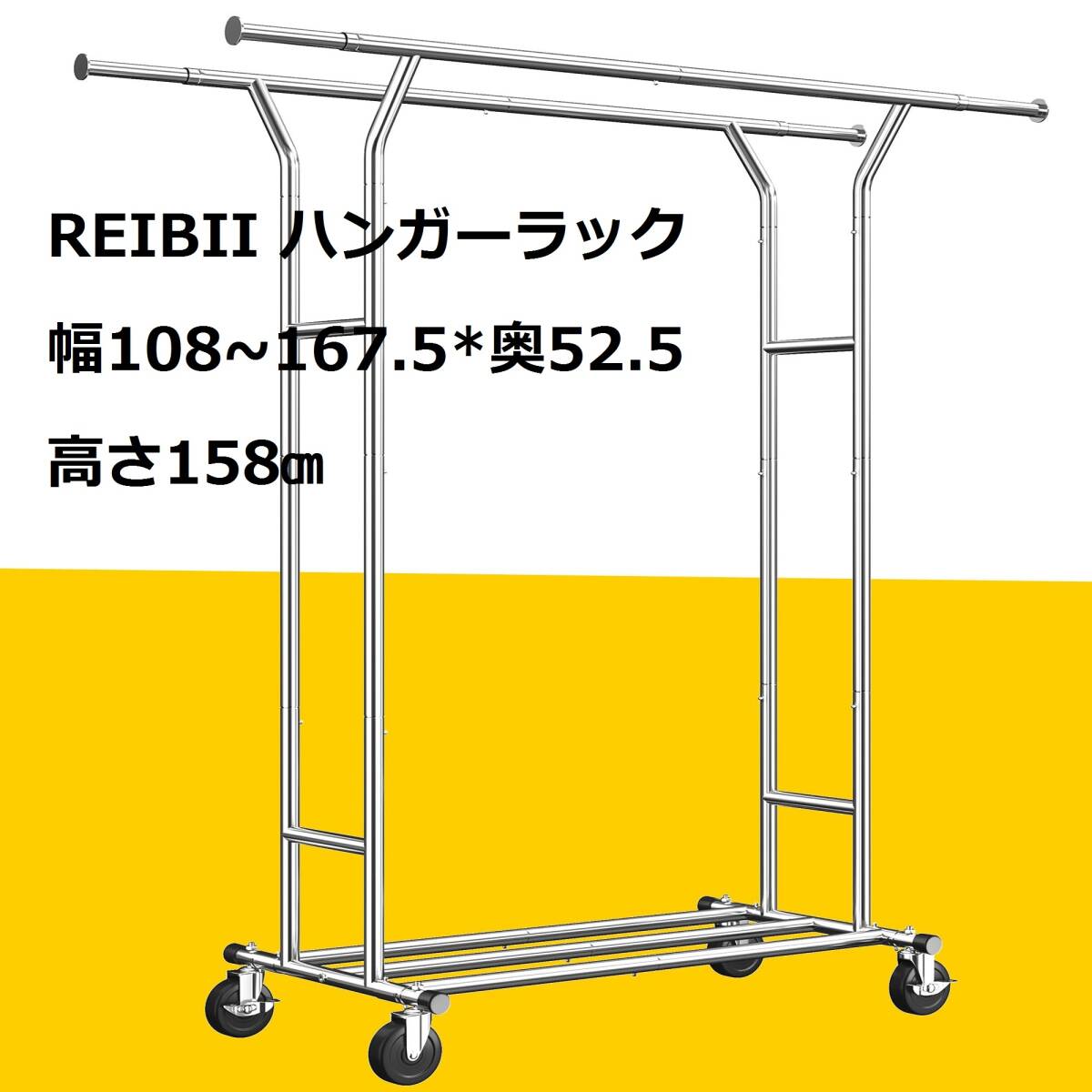【開封未使用品】REIBII ハンガーラック 頑丈 幅108~167.5*奥行き52.5*高さ158㎝ 洋服ラック 耐荷重90KG 左右伸縮 キャスター付き 組立簡単