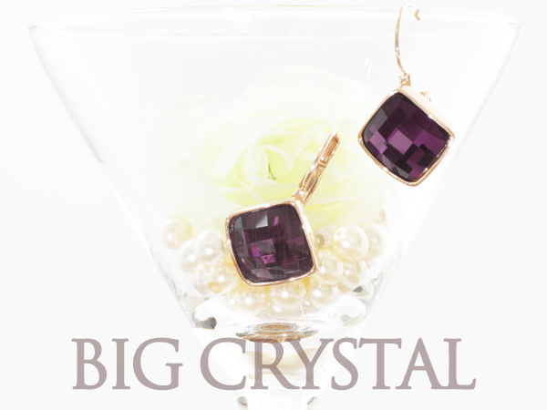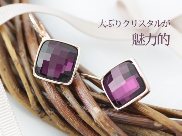アメジストクリスタルスクエアピアス