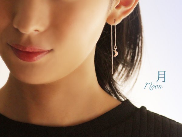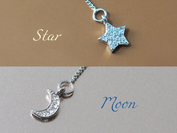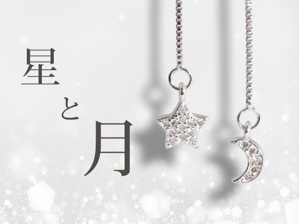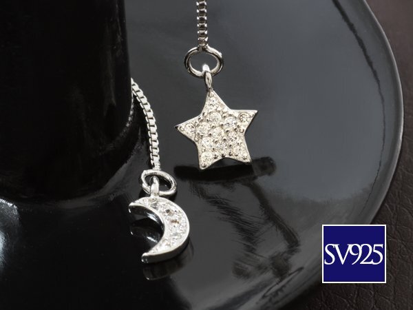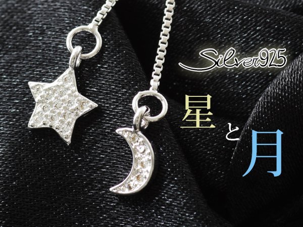 ピアス レディース 星 月 シルバー スター ムーン 揺れる ロング チェーン プラチナ仕上げ / SV925 CZダイヤ スタームーンアメリカンピアス