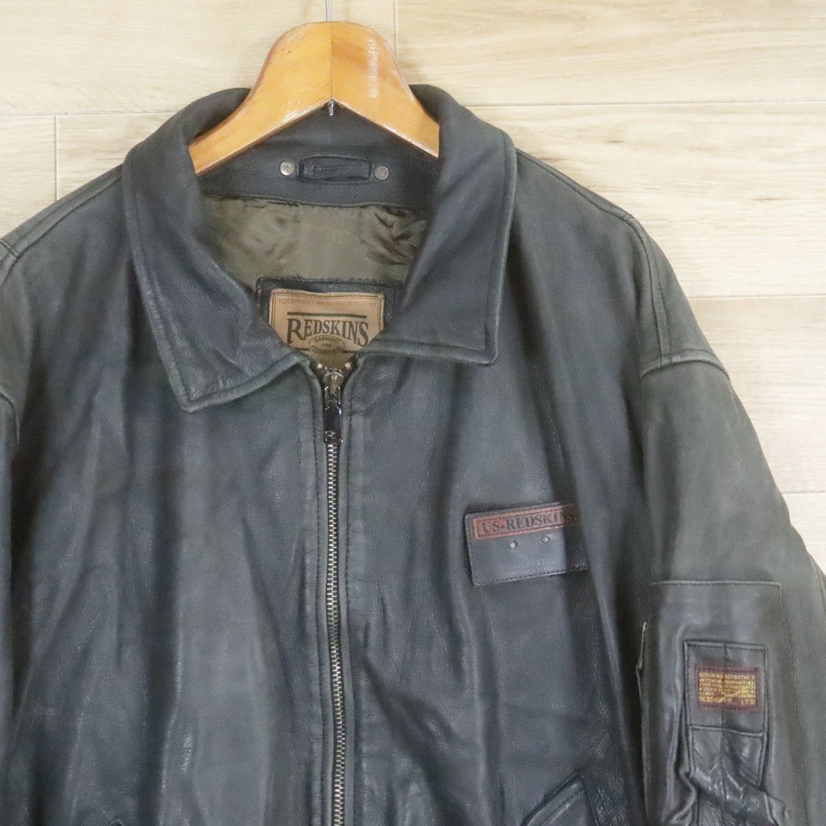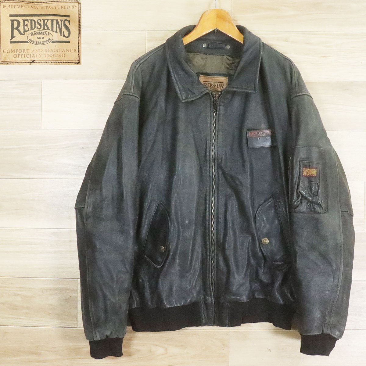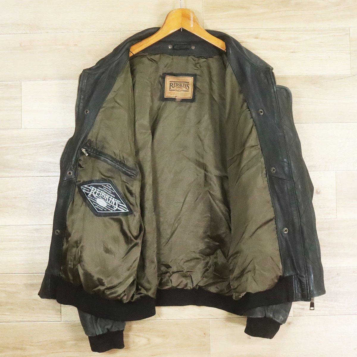 D10O/O9.25-3 REDSKINS レッドスキンズ レザーフライトジャケット 本革 革ジャン 皮ジャン レザージャケット メンズブラック系
