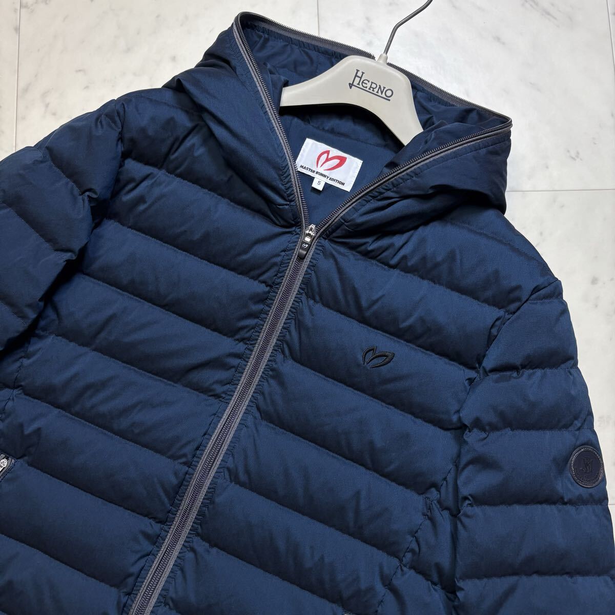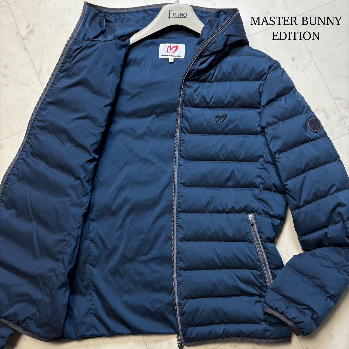 極美品/Lサイズ★ マスターバニー MASTER BUNNY EDITION ダウンジャケット パーカー ブルゾン アウター ロゴ刺繍 ワッペン ネイビー メンズ