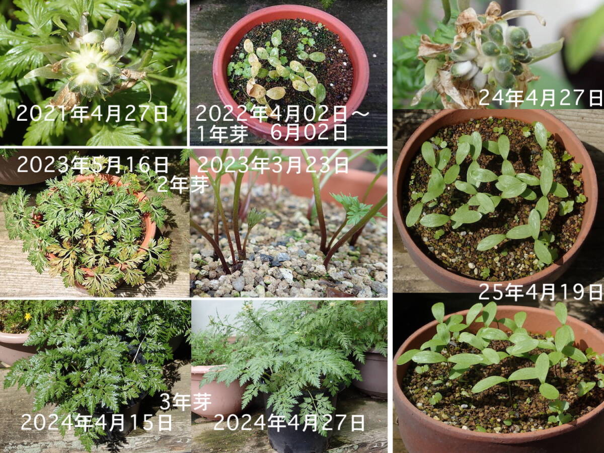 2024年に「佐渡の幻の黄花」が種を付けたので植えてみたところ、2025年全ての発芽。2021年の種同様大きな双葉、早い発芽から長く生えてましたから、この系統の健常で生長は異常に早いようです。