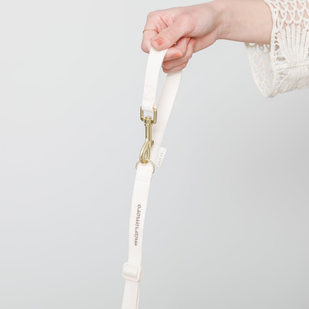ブランド:monch?riカラー:IVORYサイズ:270cm【ベーシックなコットンリード】ベーシックな3色展開なので、どのカラーでも合わせやすく、コーディネートしやすいリードです。全長MAX270cmまで伸ばすことができ、アジャスターで短くすることも可能な優れもの◎愛犬ちゃんの行動範囲が広がり、お散歩にゆとりができます。同シリーズのコットンライクハーネスとSETでのご使用がお勧めです。
