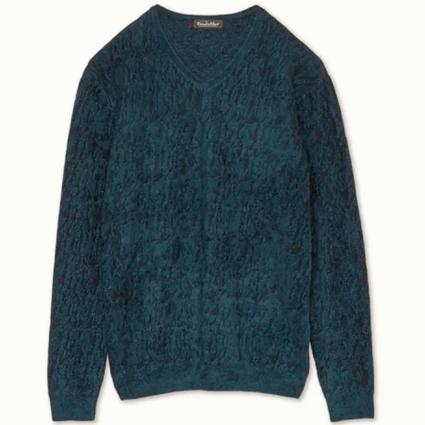 ■アニマルパターンの迷彩柄をモールヤーンで編み上げたVネックのプルオーバー