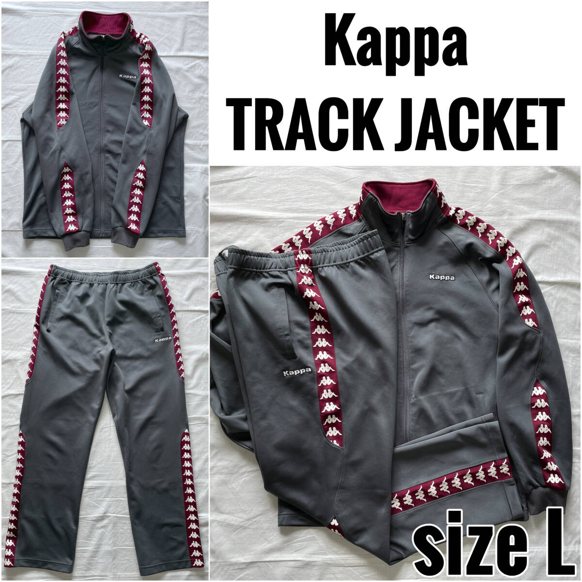 Kappa TRACK JACKET カッパ サイドロゴ トラックジャケット セットアップ サイズL グレー ロゴテープ 上下セット ジャージ