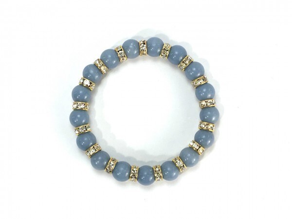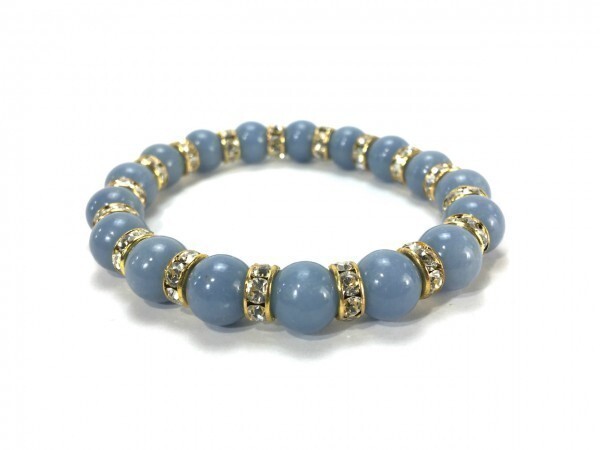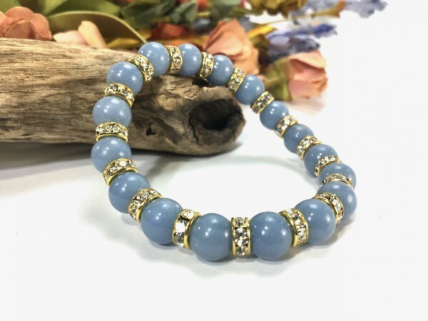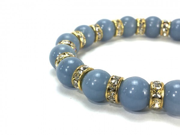こちらは、10mm玉のエンジェライトを使用したパワーストーンブレスレットです。間にはロンデルを挟み高級感あるブレスレットに仕上げています。石大きさは腕にも馴染みやすいように10mm玉を使用して、サイズは内径約18cmです。(サイズ調節も無料で承っています。サイズ変更の場合は落札後、取引ナビにてご一報くださいませ。) 数に限りがございますので気になる方はお早めにどうぞ。