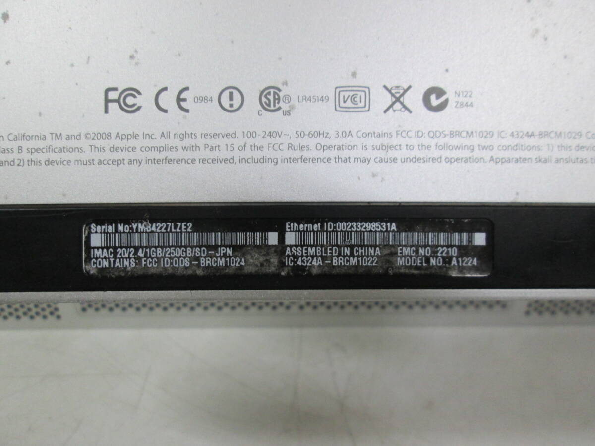【1118h F1209】 Apple iMac A1224 液晶パネル デスクトップ パソコン 本体のみ コード等なし 48.5×40㎝ 通電・動作未確認 ジャンク