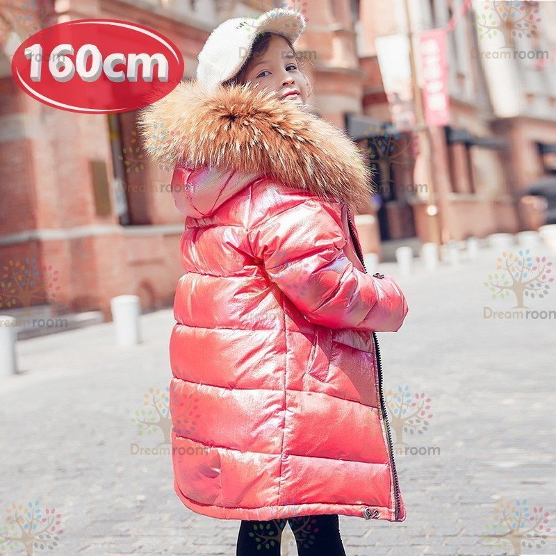 kids シャイニー ダウンコート ロングコート レッド【160cm】中綿 防水 子供 冬物 冬服 K-303